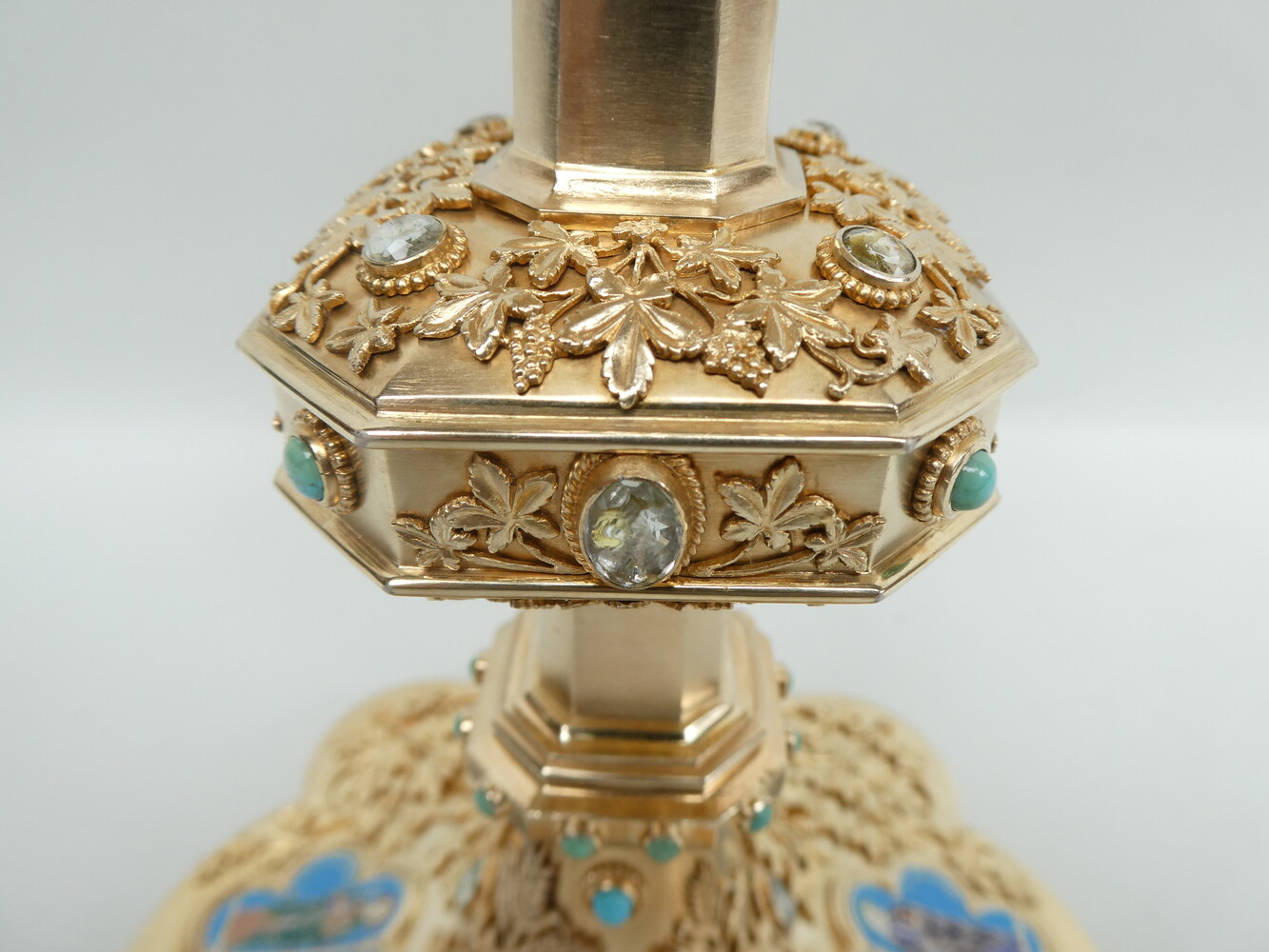 2de reeks foto's van de prachtige neogotieke zilveren kelk met overvloedige émail versiering
