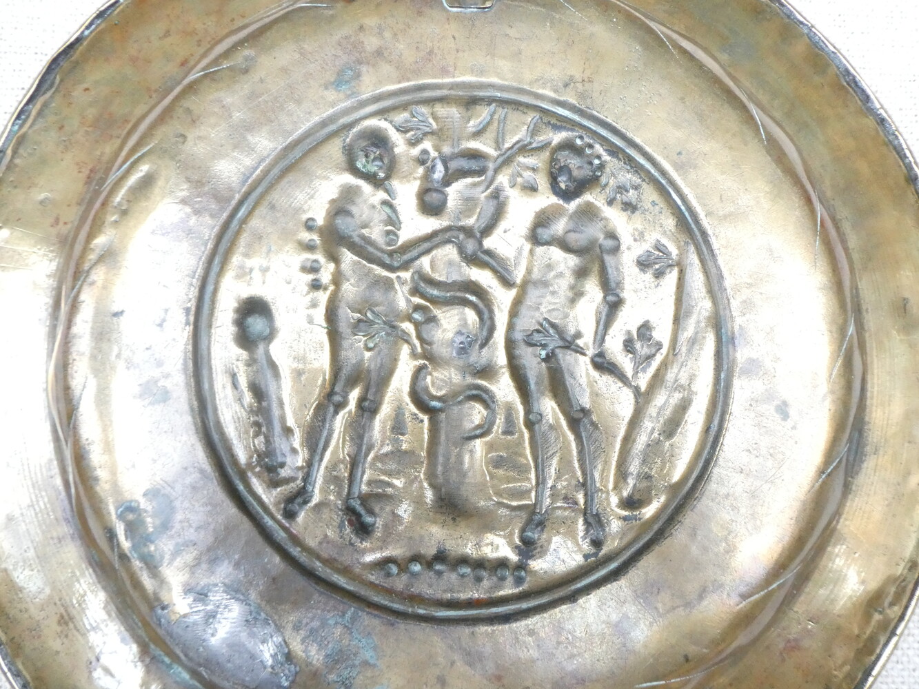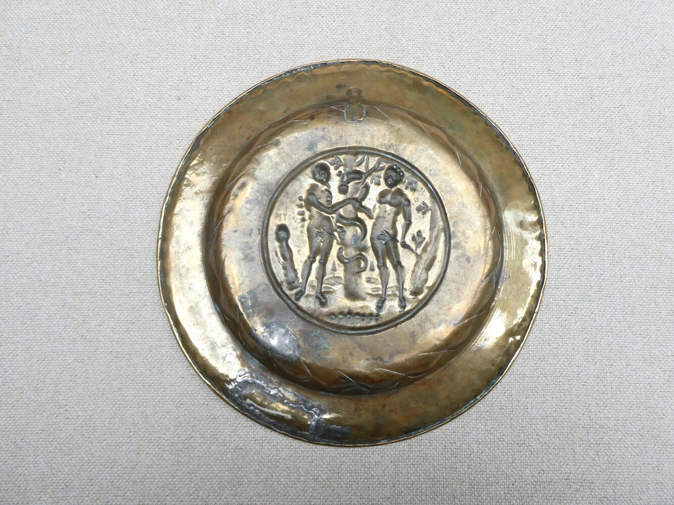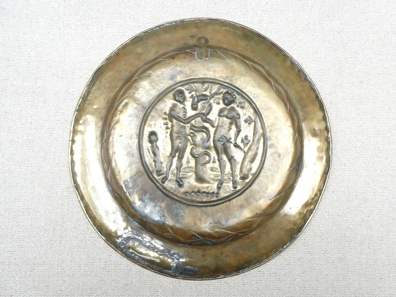 "Adam en Eva" antieke koperen offerandeschaal, Nürnberg ca 1600