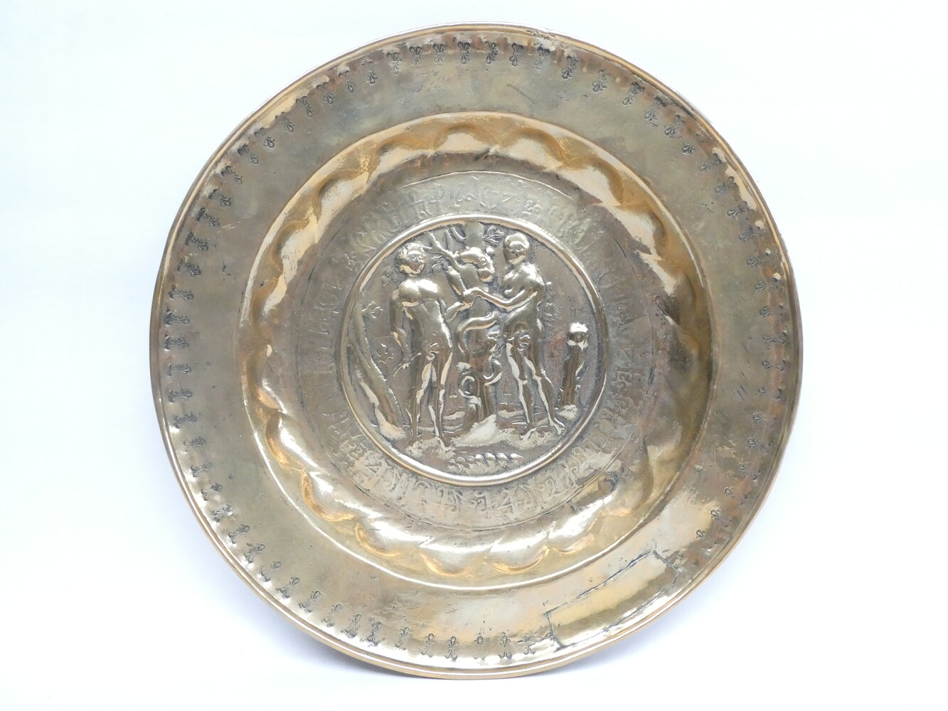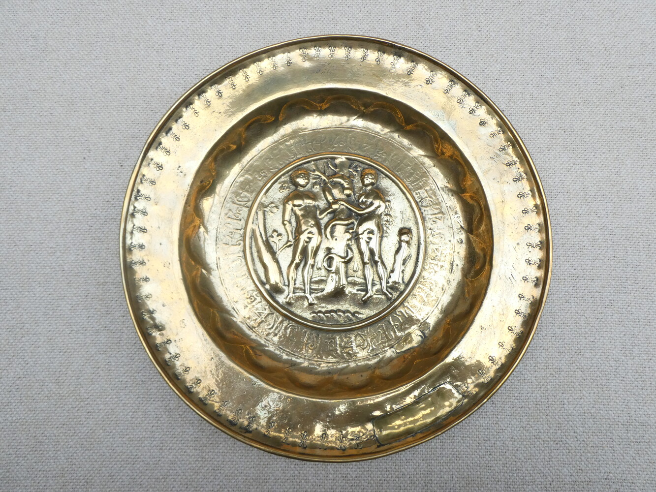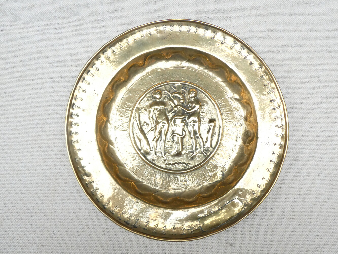 "Adam en Eva" antieke koperen offerandeschaal, Nürnberg ca 1600