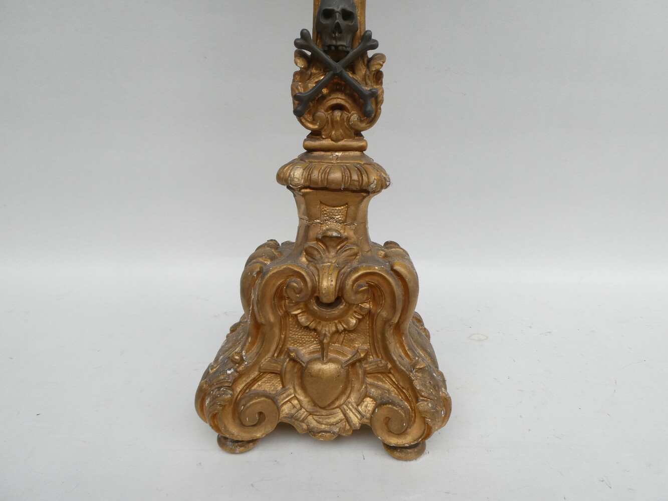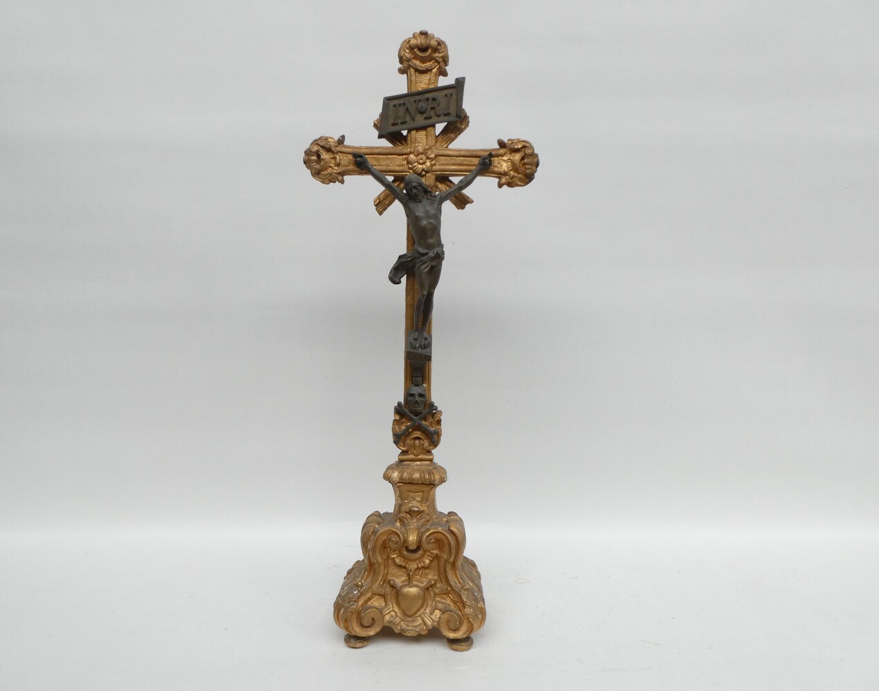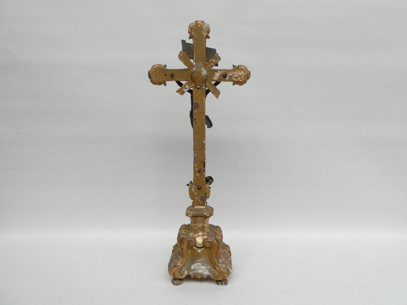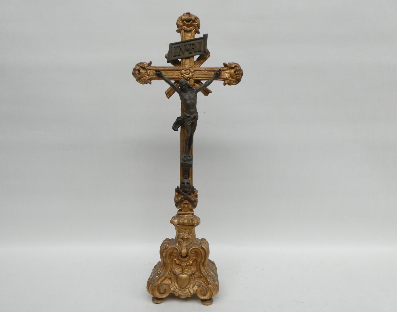 Antiek polychroom houten altaarkruis met bronzen Corpus