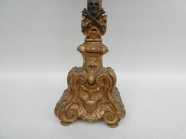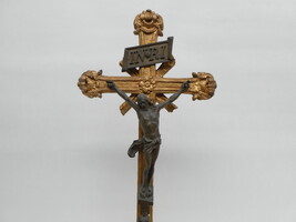 Antiek polychroom houten altaarkruis met bronzen Corpus.