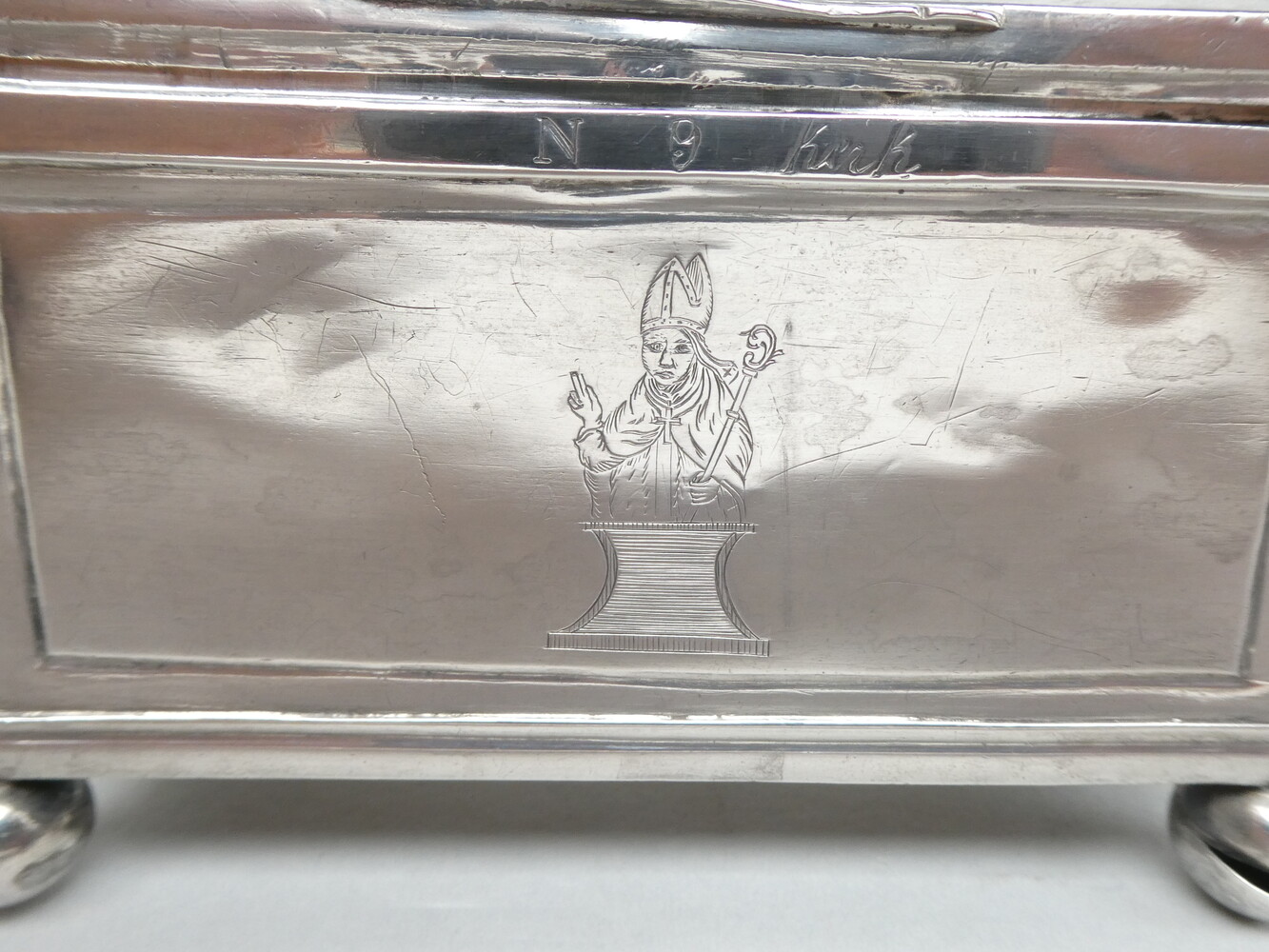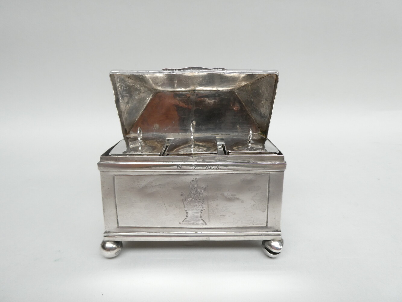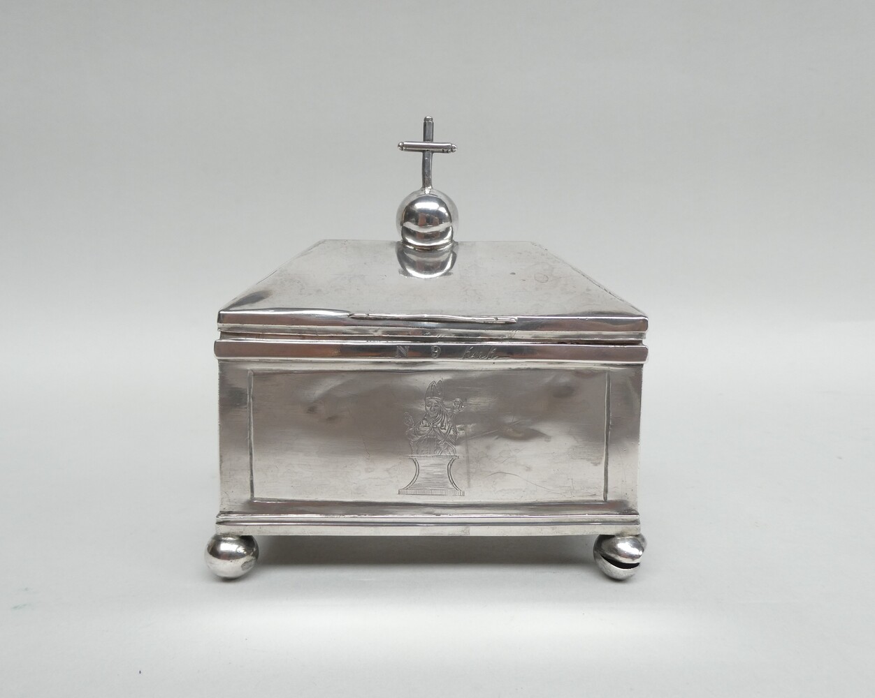 Antiek zilveren chrismatorium kistje voor de drie oliën