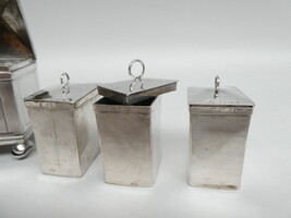 Het chrismatorium is compleet met de drie busjes met dekseltjes voor de verschillende oliën.
