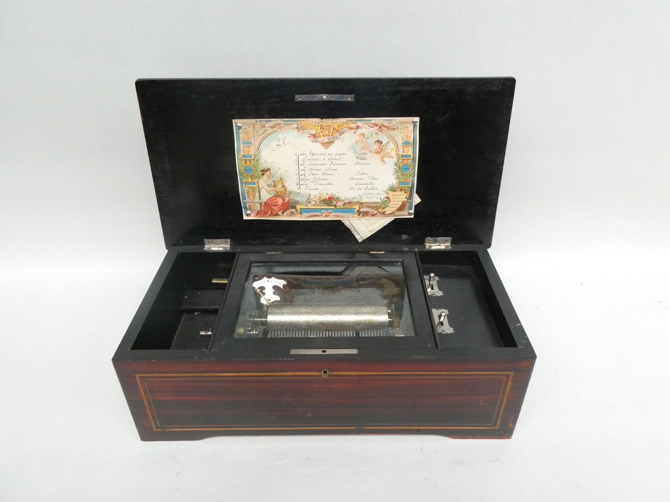 Antieke muziekdoos, 45cmx23cm - hoogte 16cm.