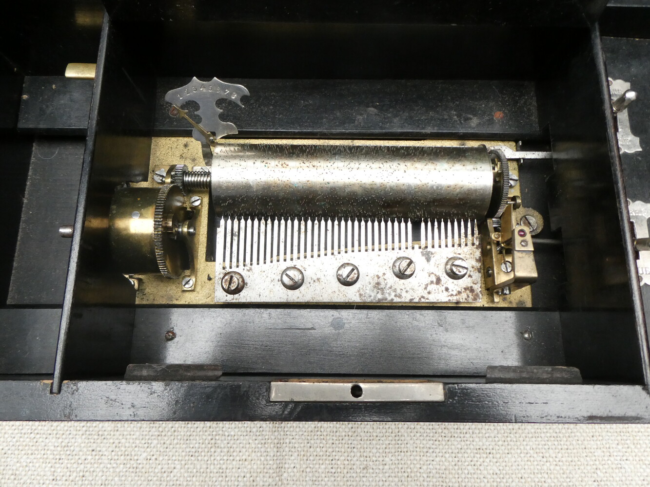 In werkende staat ( één pin ontbreekt in de klankkam ).