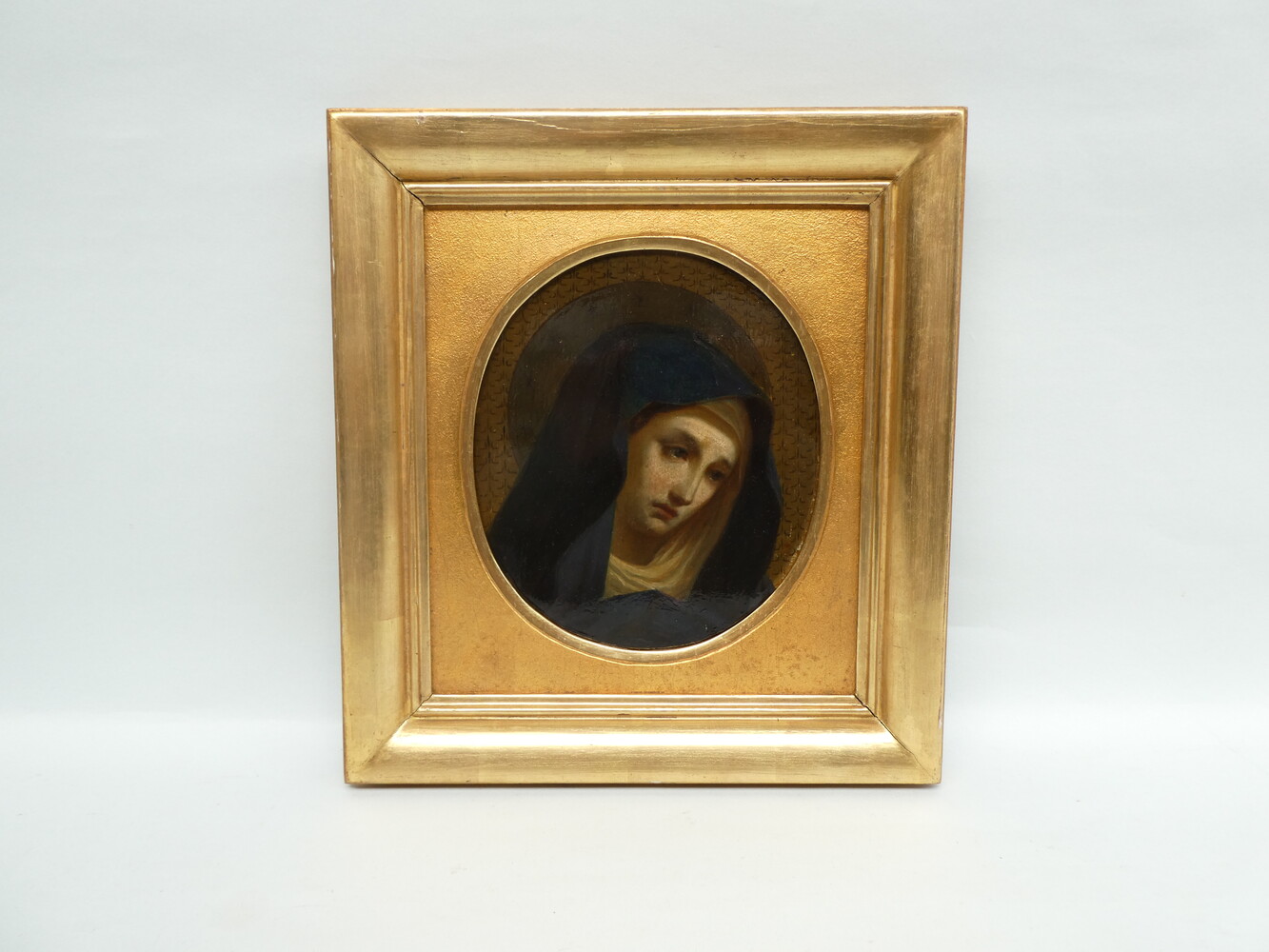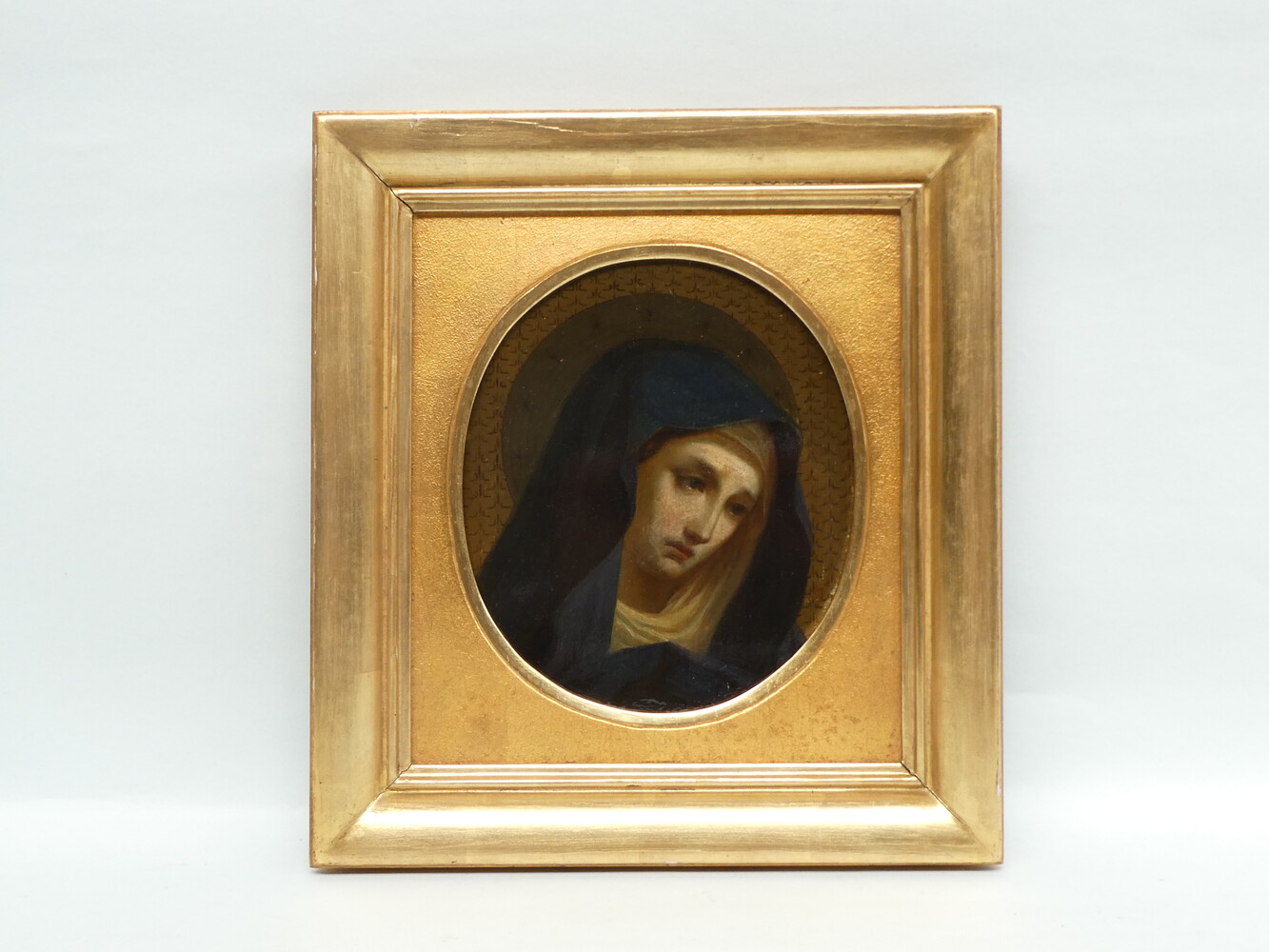 "Bedroefde Maria" antiek schilderijtje, olie op paneel