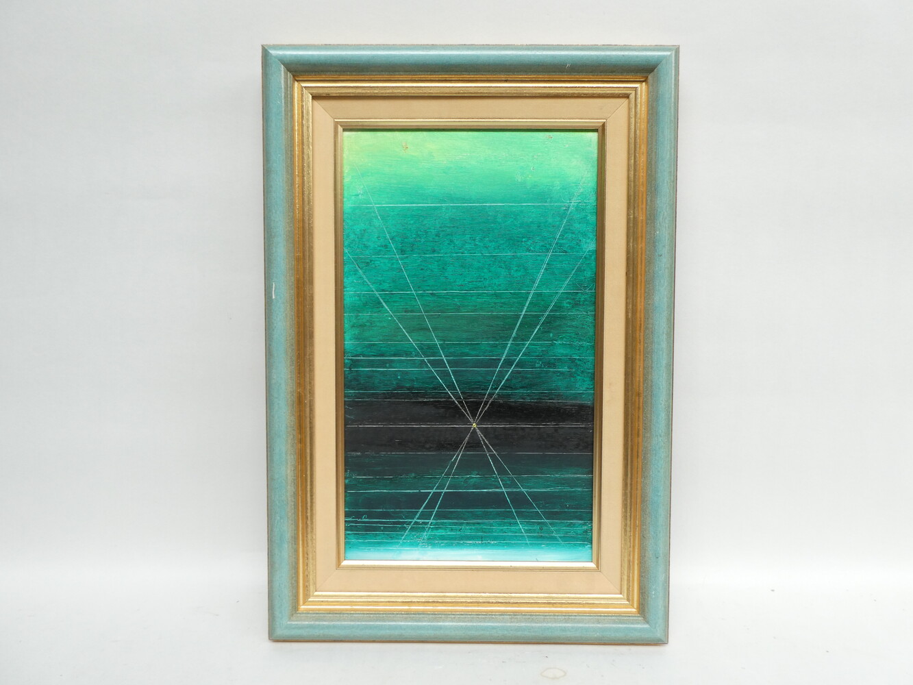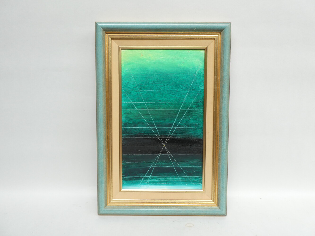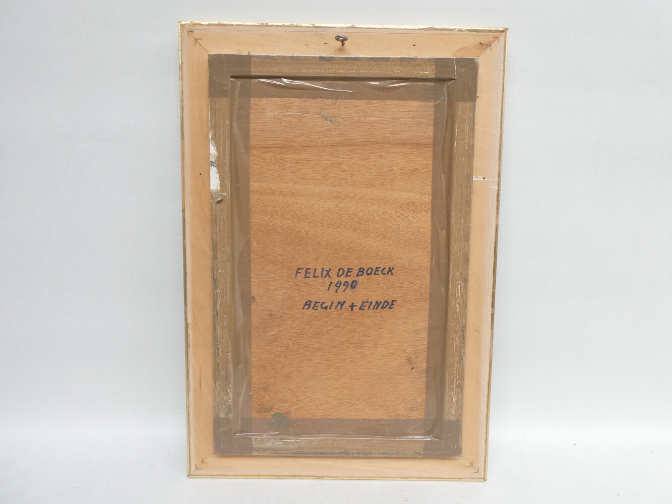 "Begin en einde" oliewerk op paneel van Felix De Boeck, gedateerd 1990. 25cm x 43cm - met kader 39cm x 57cm.
