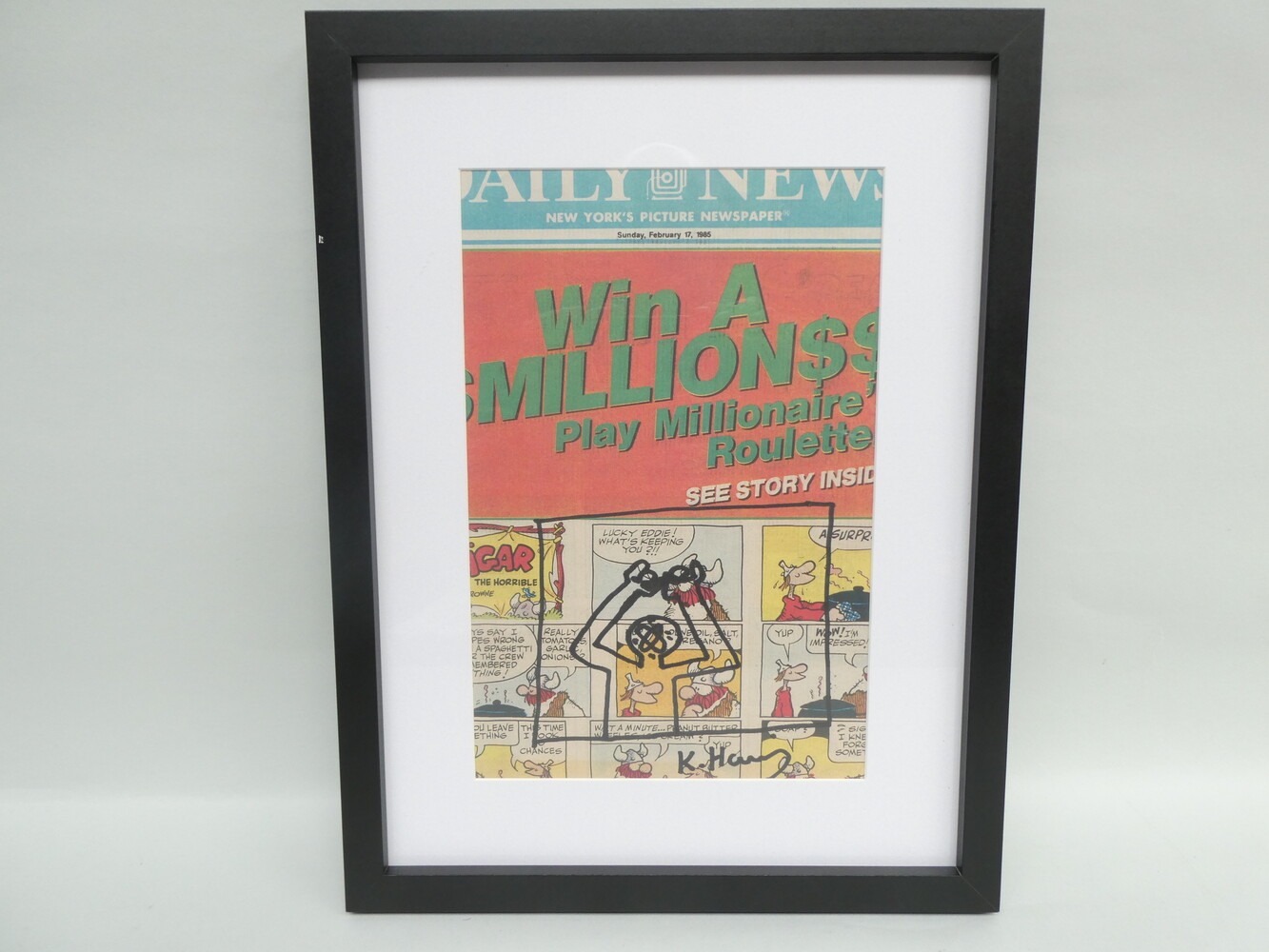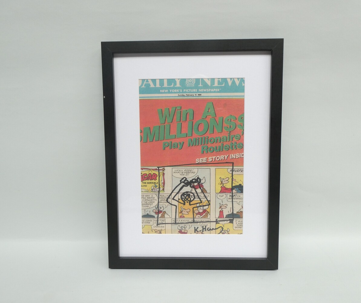"Bokser" viltstifttekening van Keith Haring. Kader 33cm x 43cm.