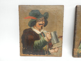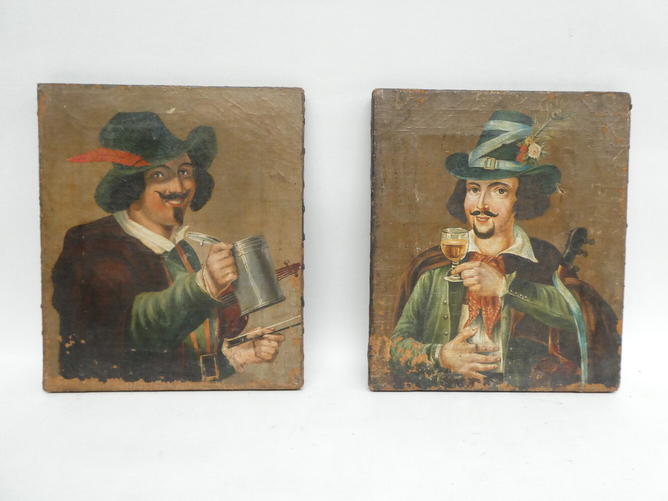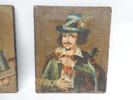 "De drinkebroers" twee antieke oliewerkjes op doek
