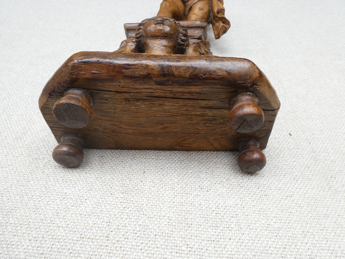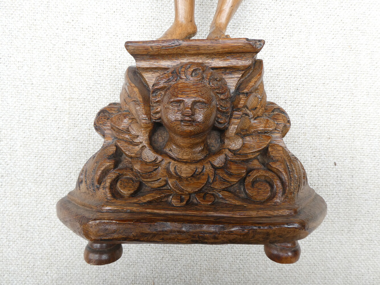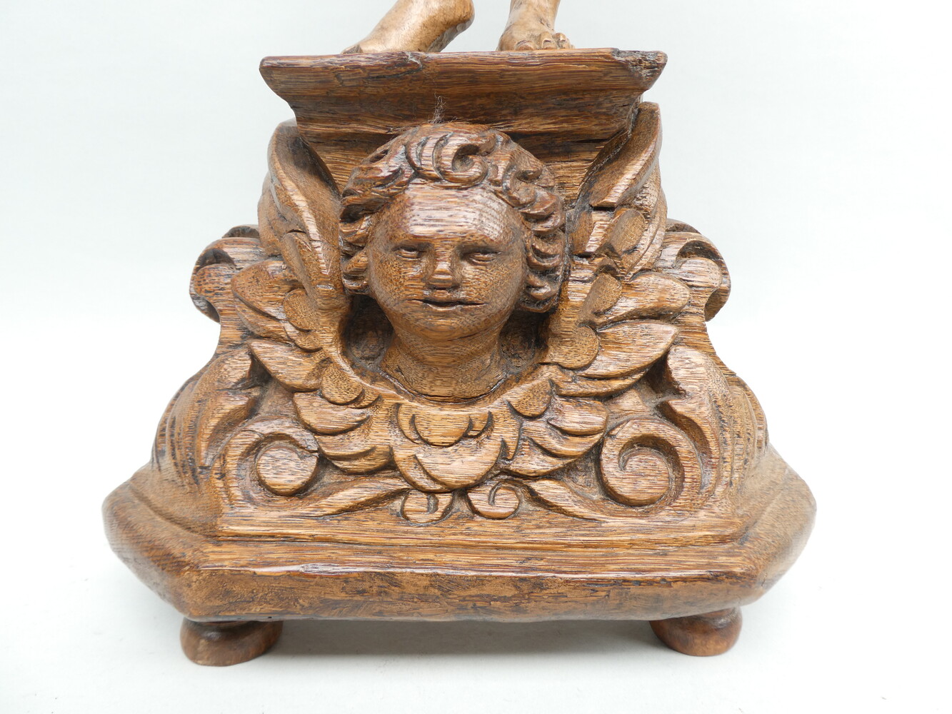 "De gebonden Christus" antiek eiken beeld op sokkel met engelenkopje