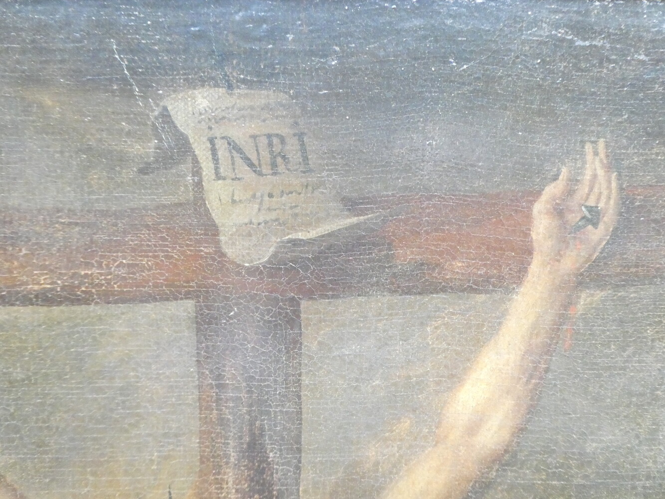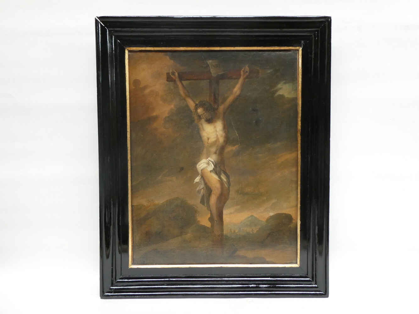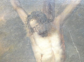 "De gekruisigde Christus" antiek oliewerk op doek.