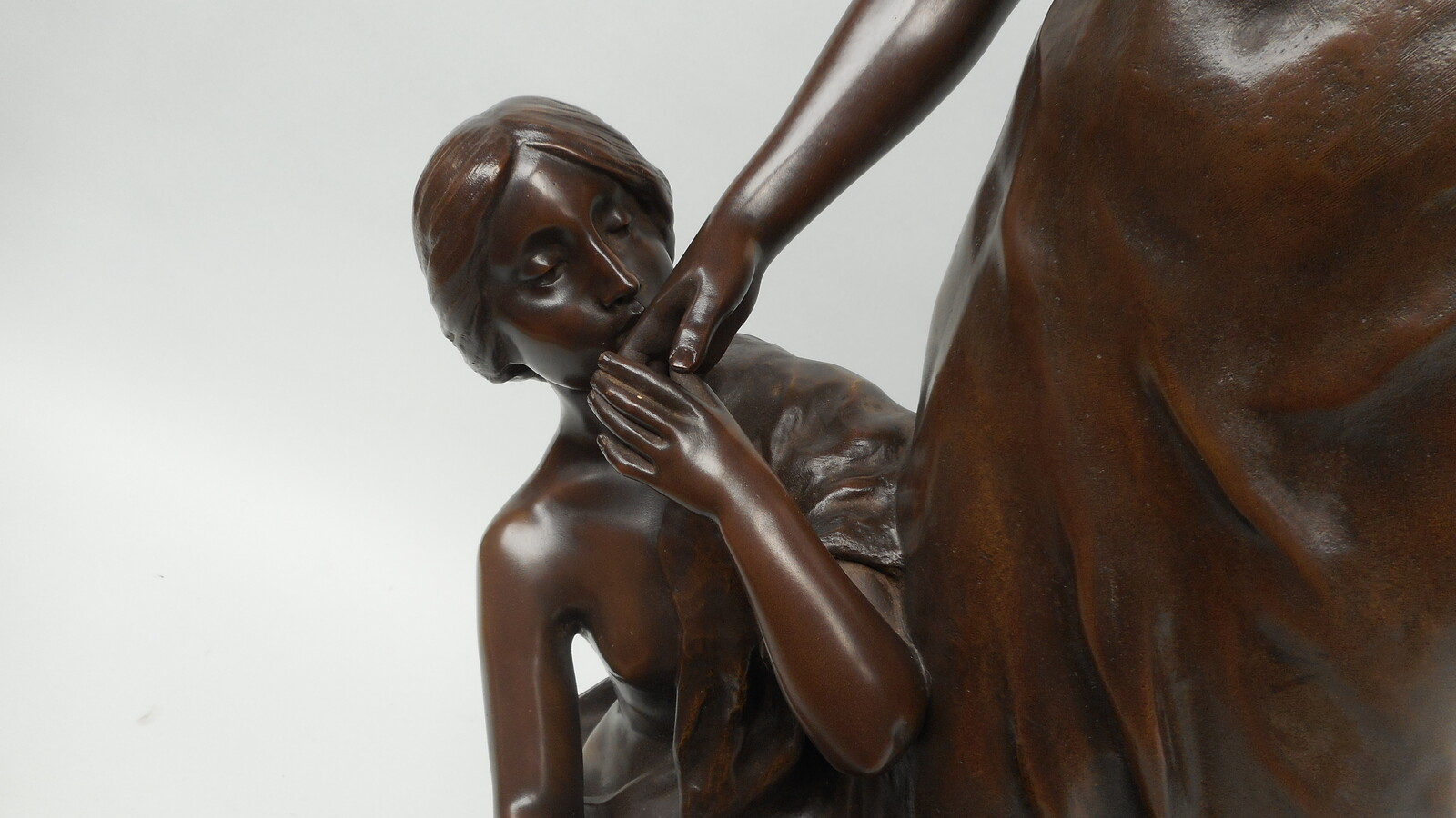 "De geliefden" grote bronzen beeldengroep van Sylvain Kinsburger. Fijne gieting en zeer mooie patine. Hoogte 65cm.