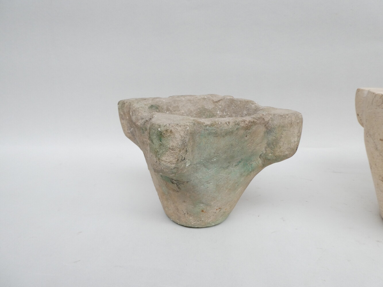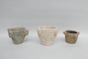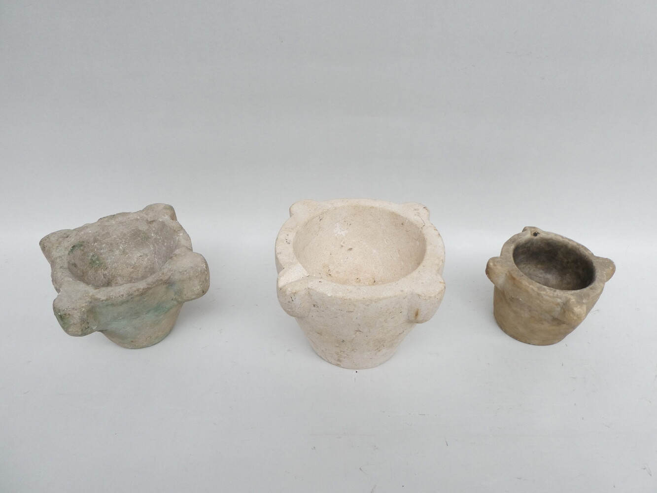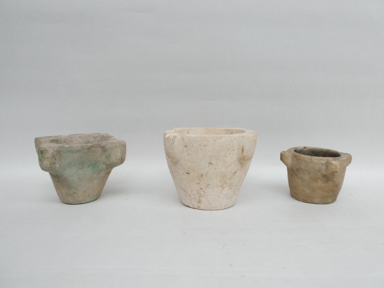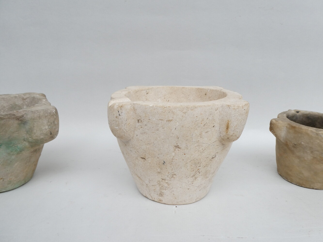 Drie antieke vijzels ca 1700 in marmer en natuursteen