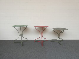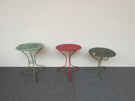 Drie ronde ijzeren tuintafeltjes