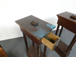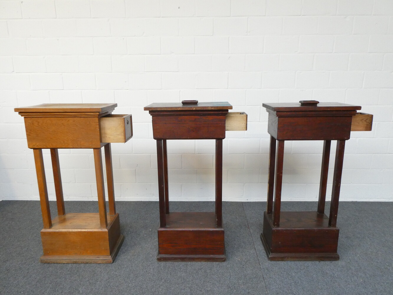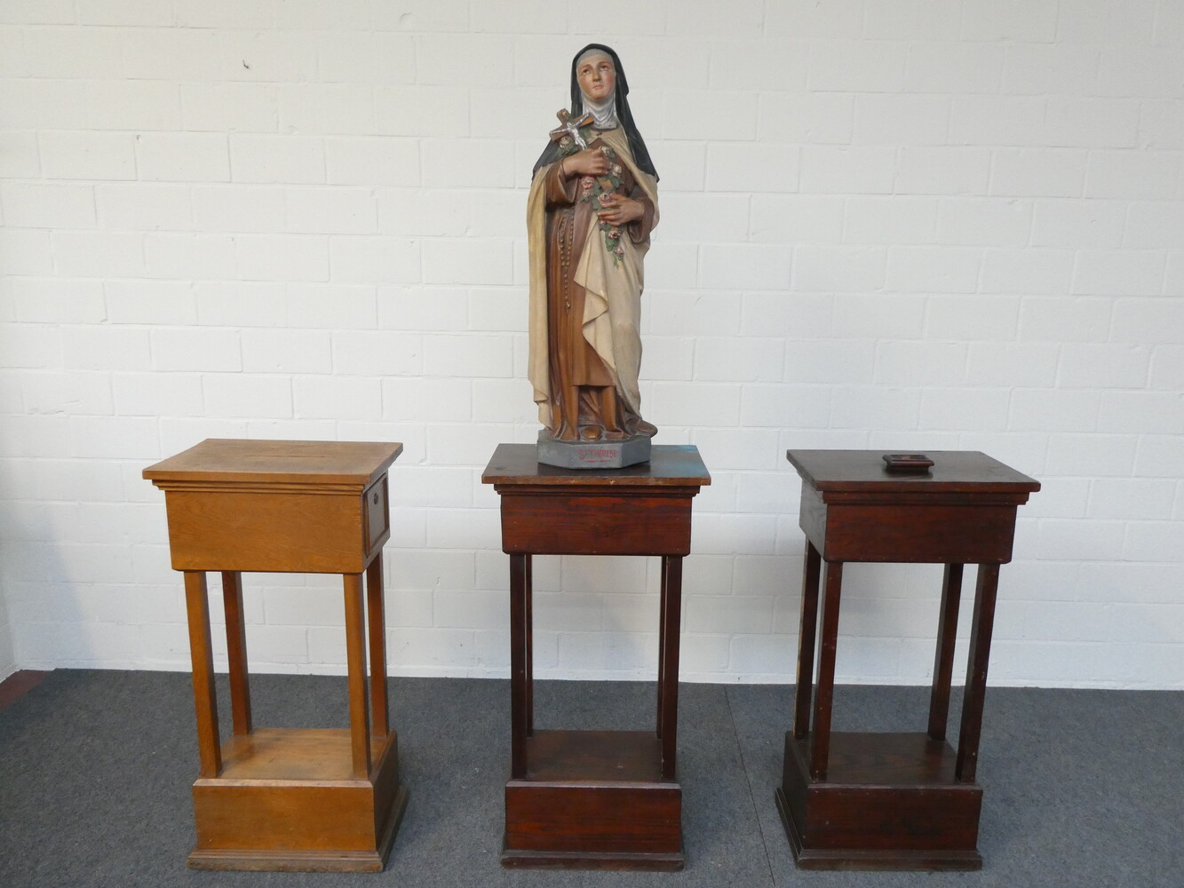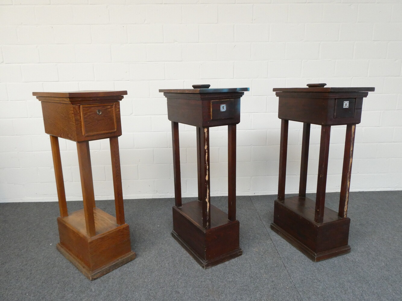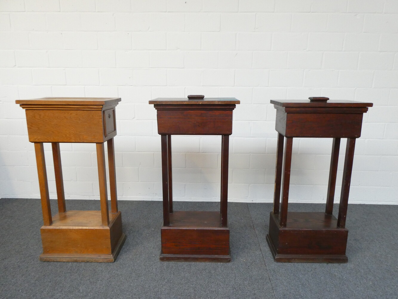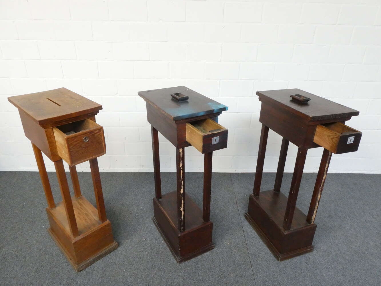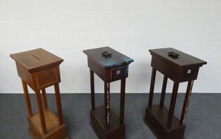 Drie houten staande offerblokken. 50cm x 32cm, hoogte 102cm. Kunnen ook dienst doen als beeldensokkel.