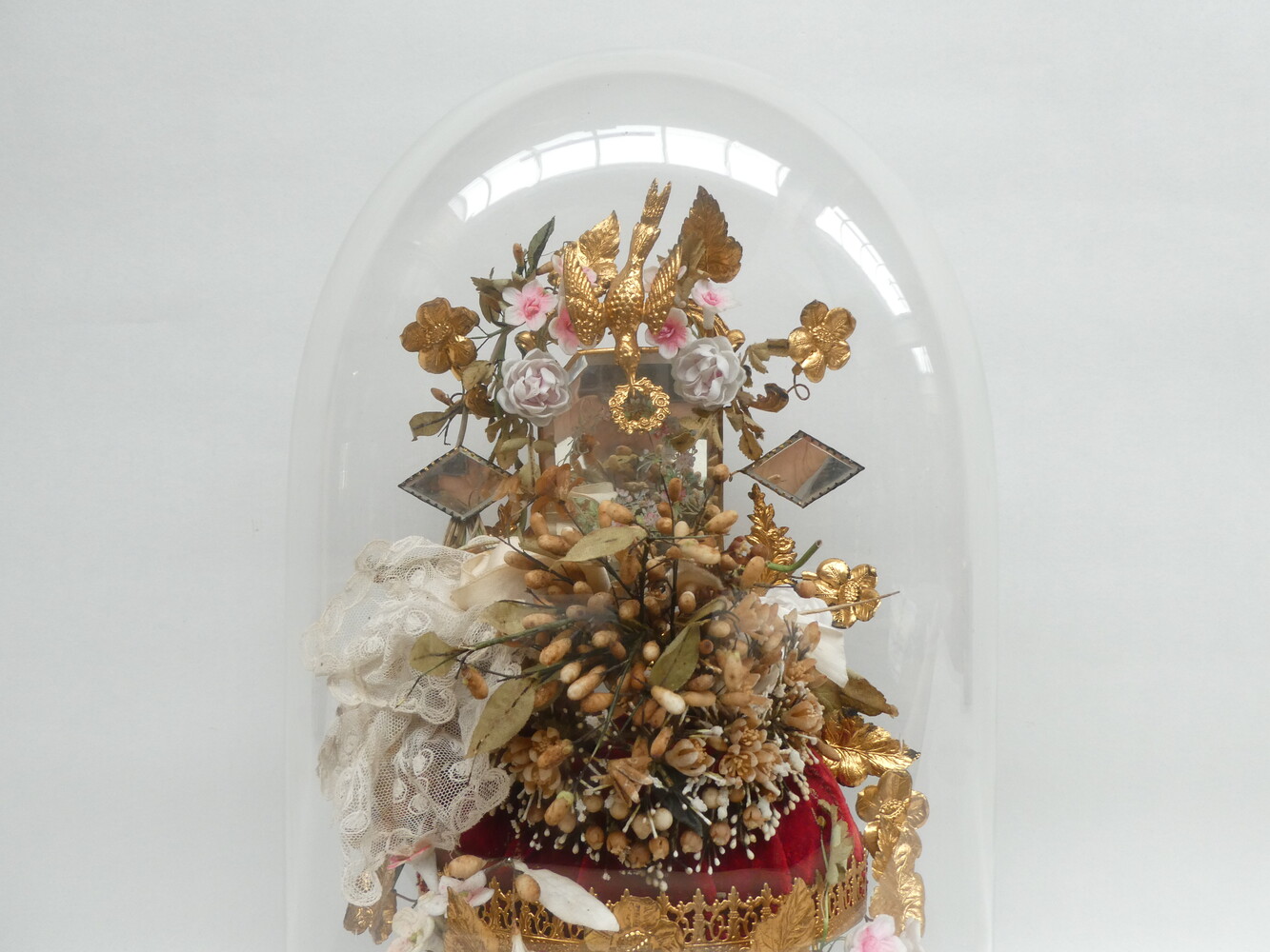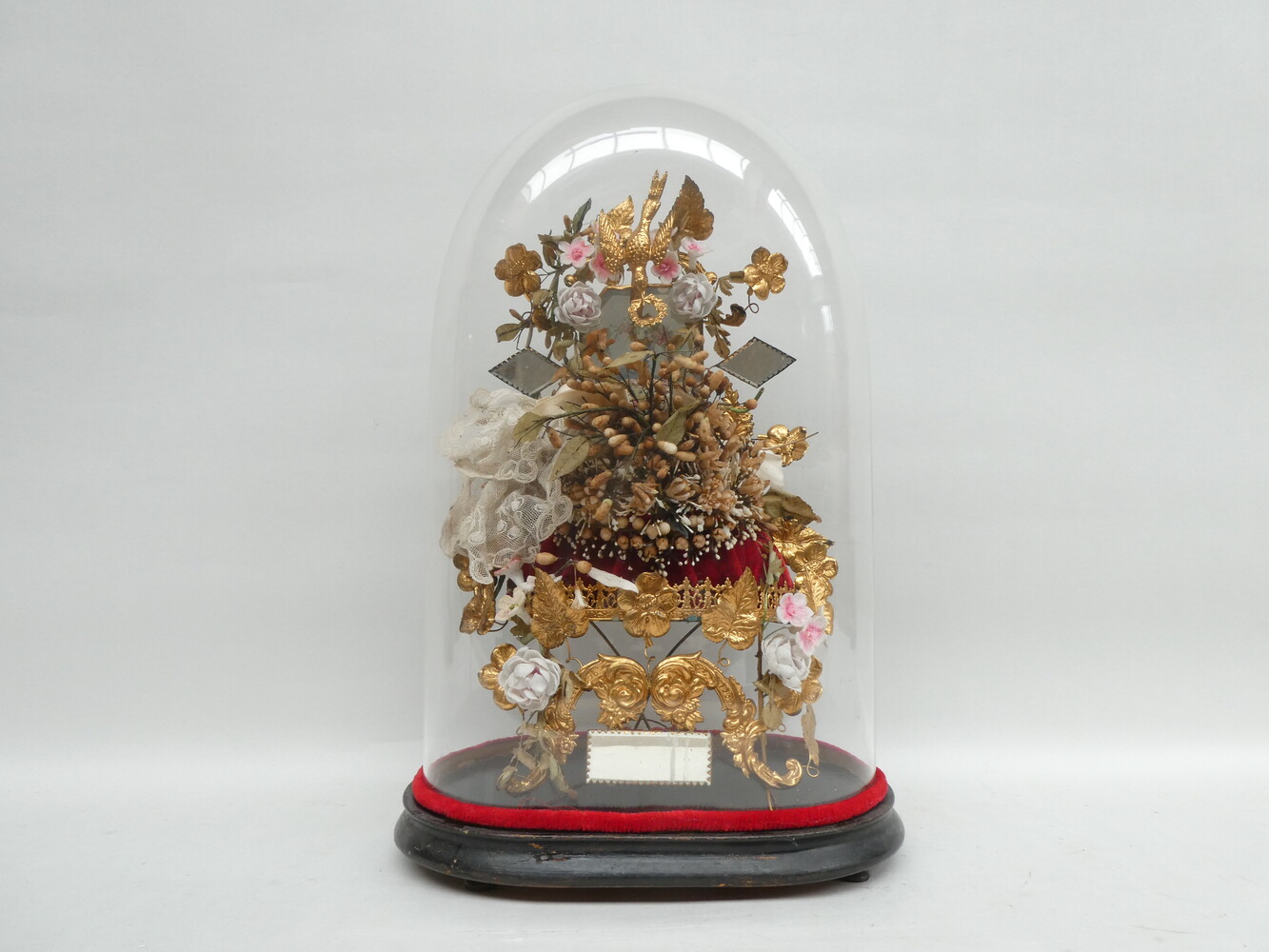 Een mooie antieke bruidsglobe met roosjes en spiegeltjes