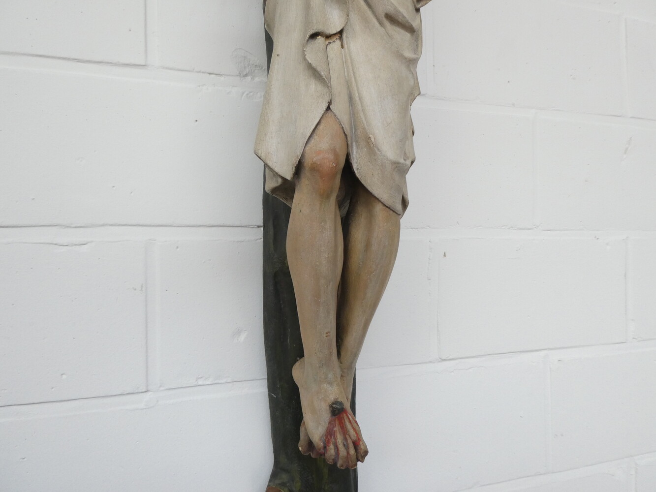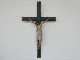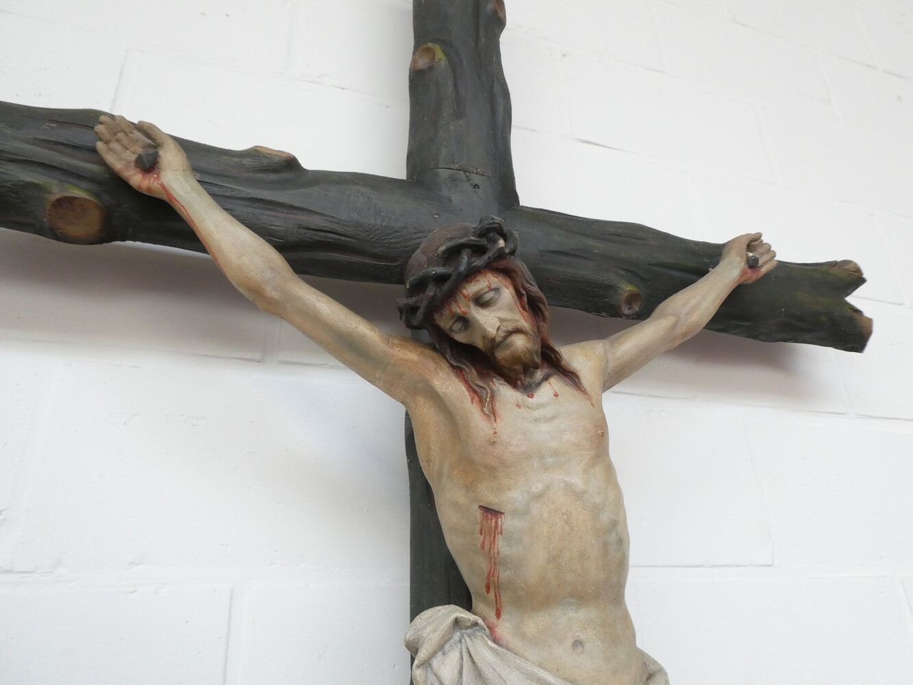 GROOT houten kruis 84cmx102cm met een gipsen Corpus 52cmx75cm.
