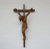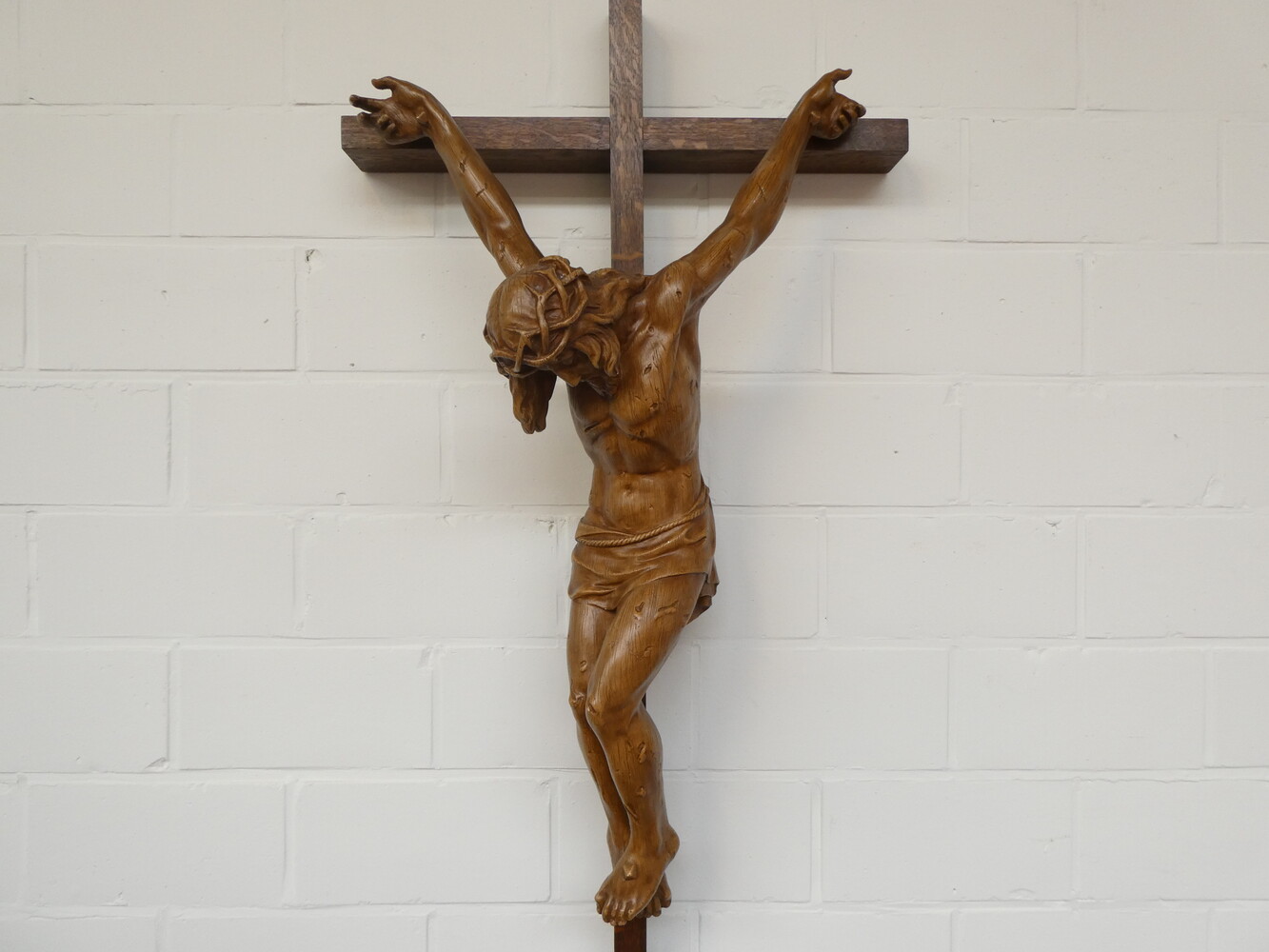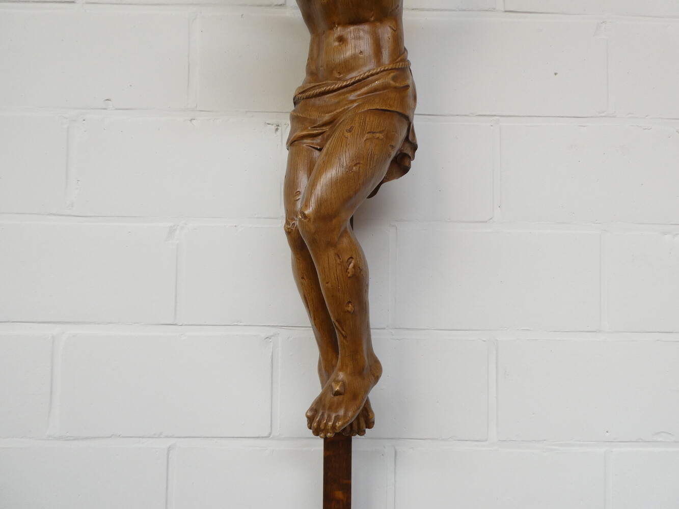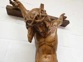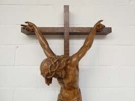 GROOT houten kruis met houtkleurige gipsen Corpus