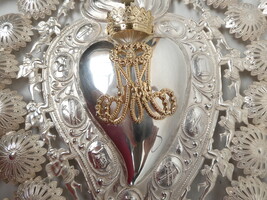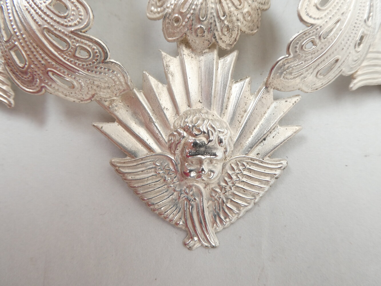 GROOT verzilverd ex-voto hart met engeltjes, lijdenssymbolen....