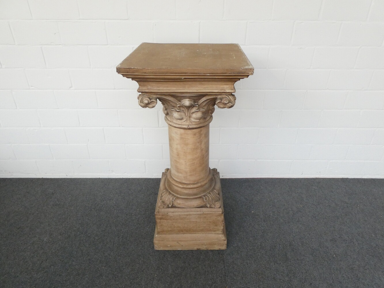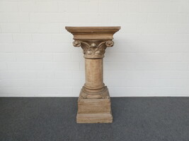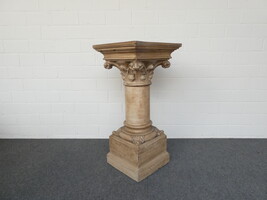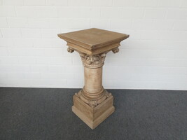 Grote houten beeldensokkel met ornamenten in gips.