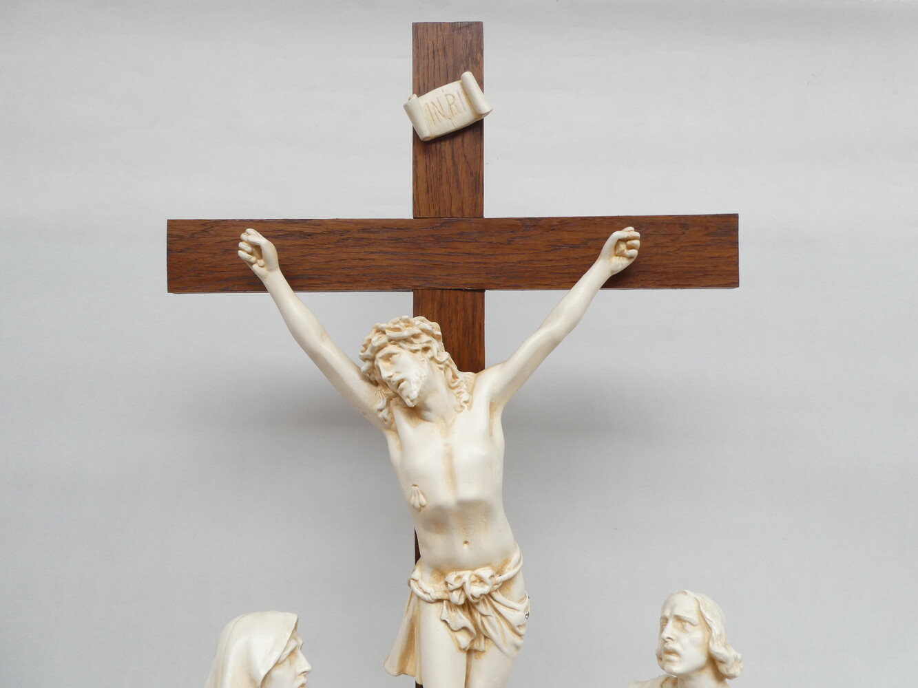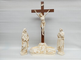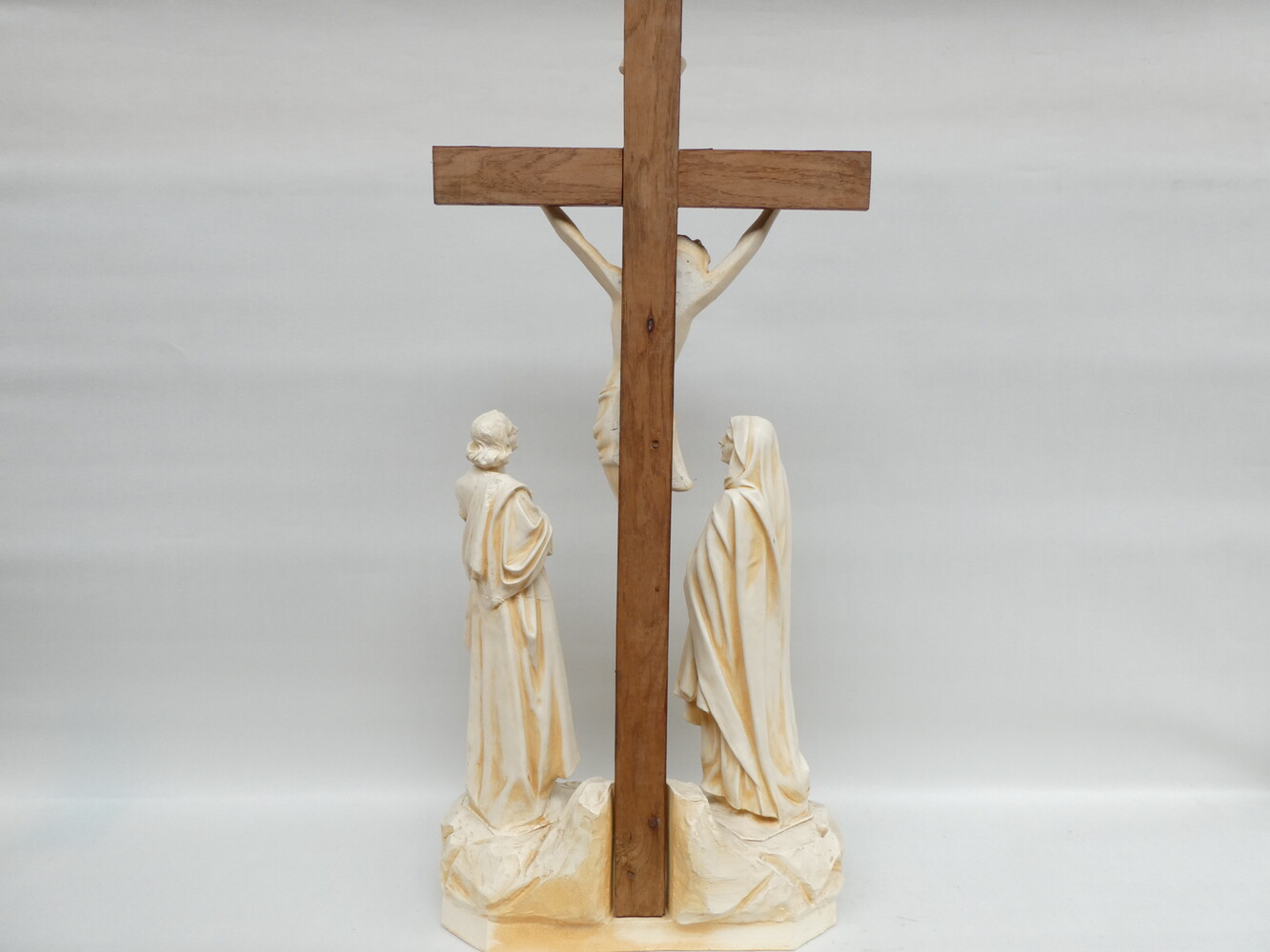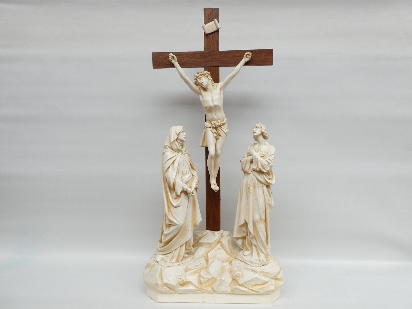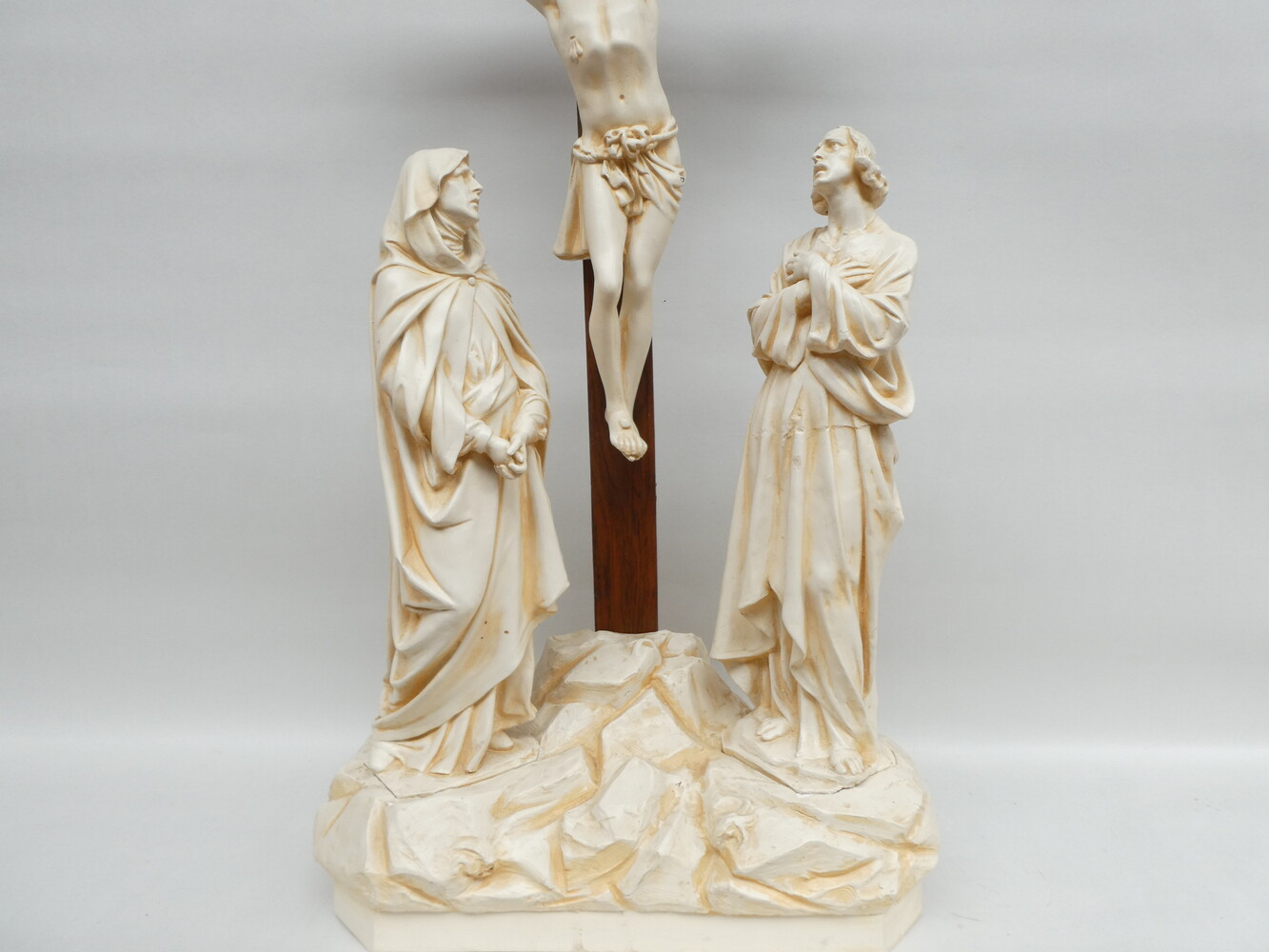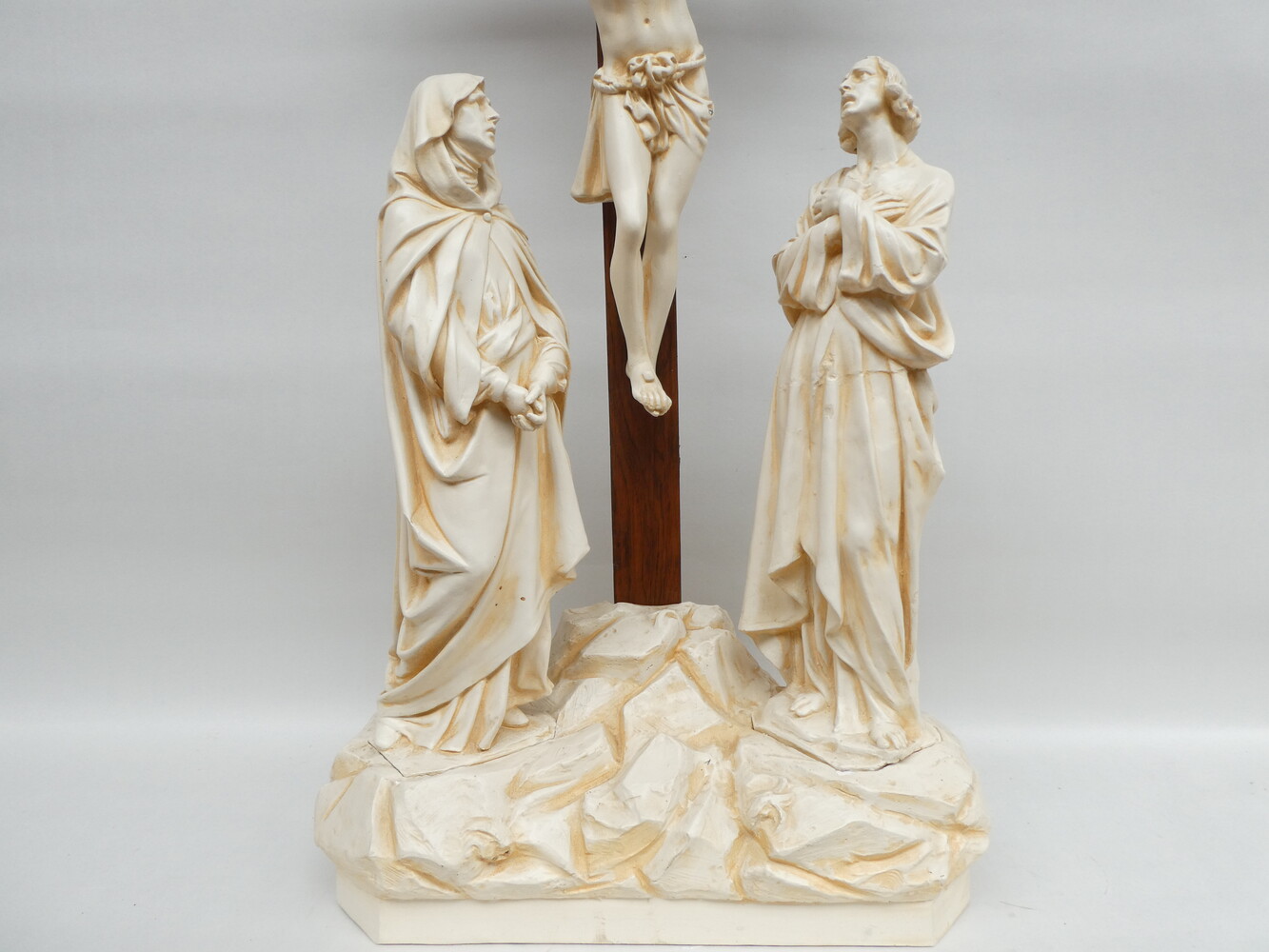 GROTE neogotieke Calvarie in gips. 53cm x 27cm - totale hoogte 115cm.