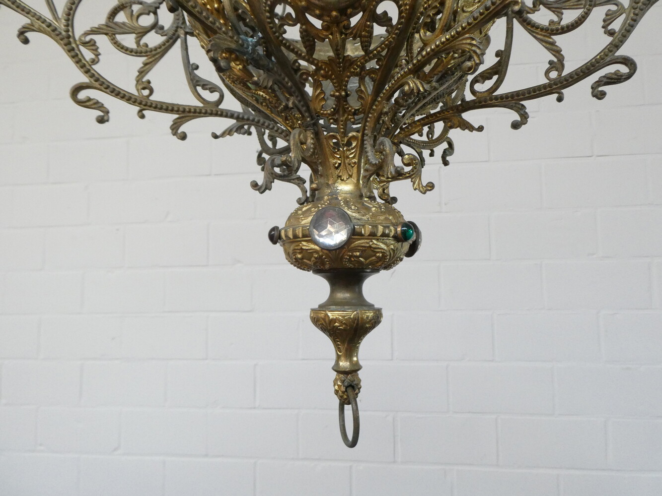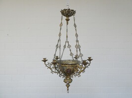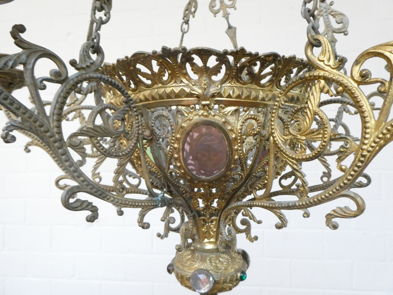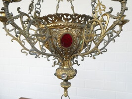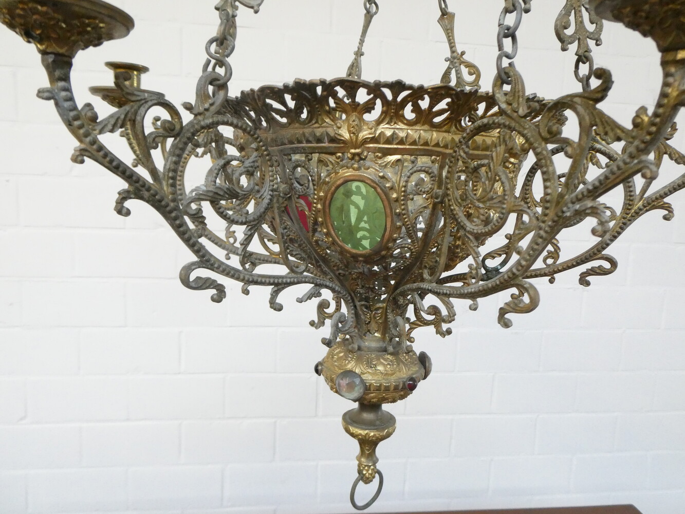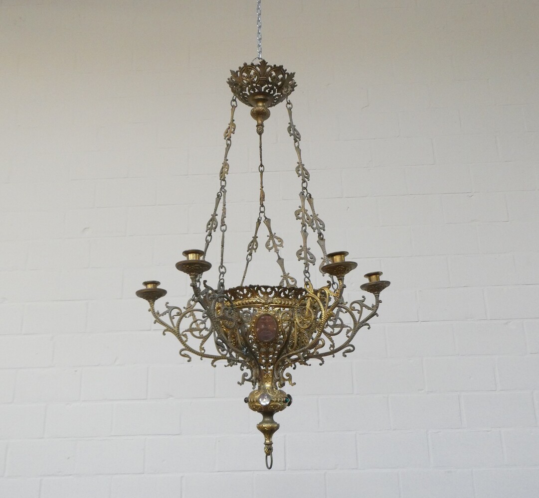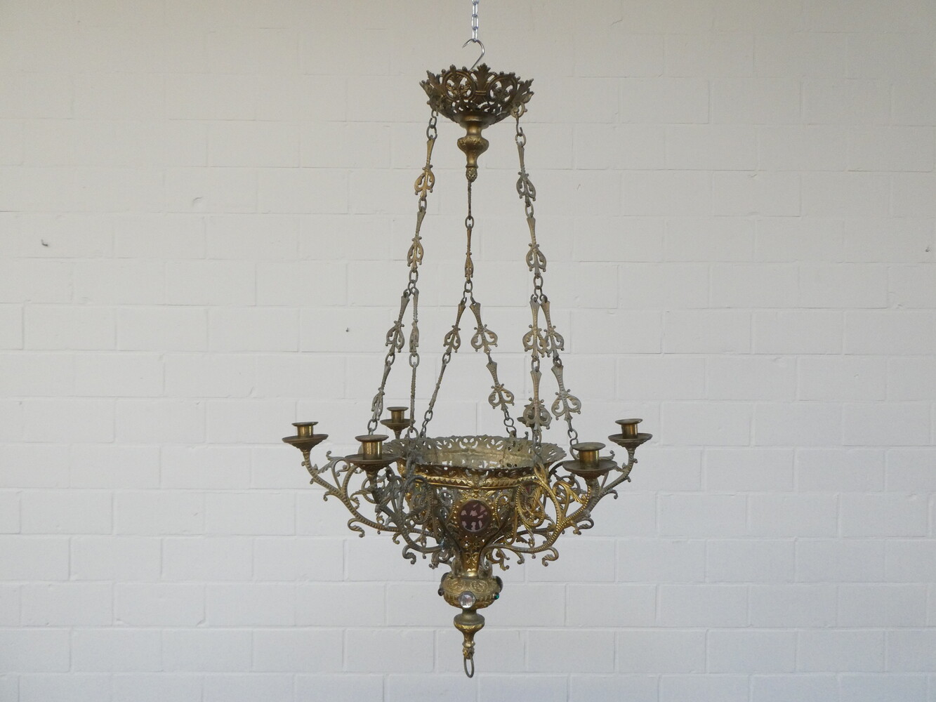 Grote neogotieke koperen kaarsenkroon ( voor zes kaarsen ).