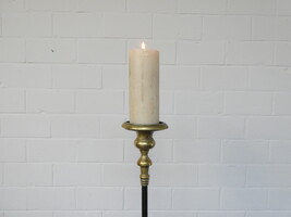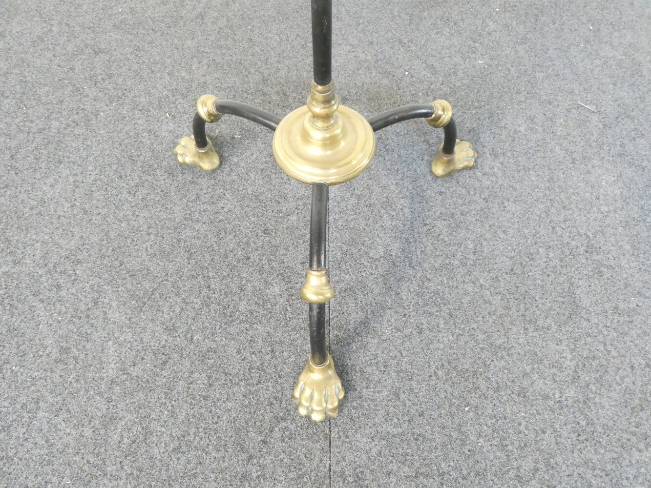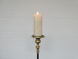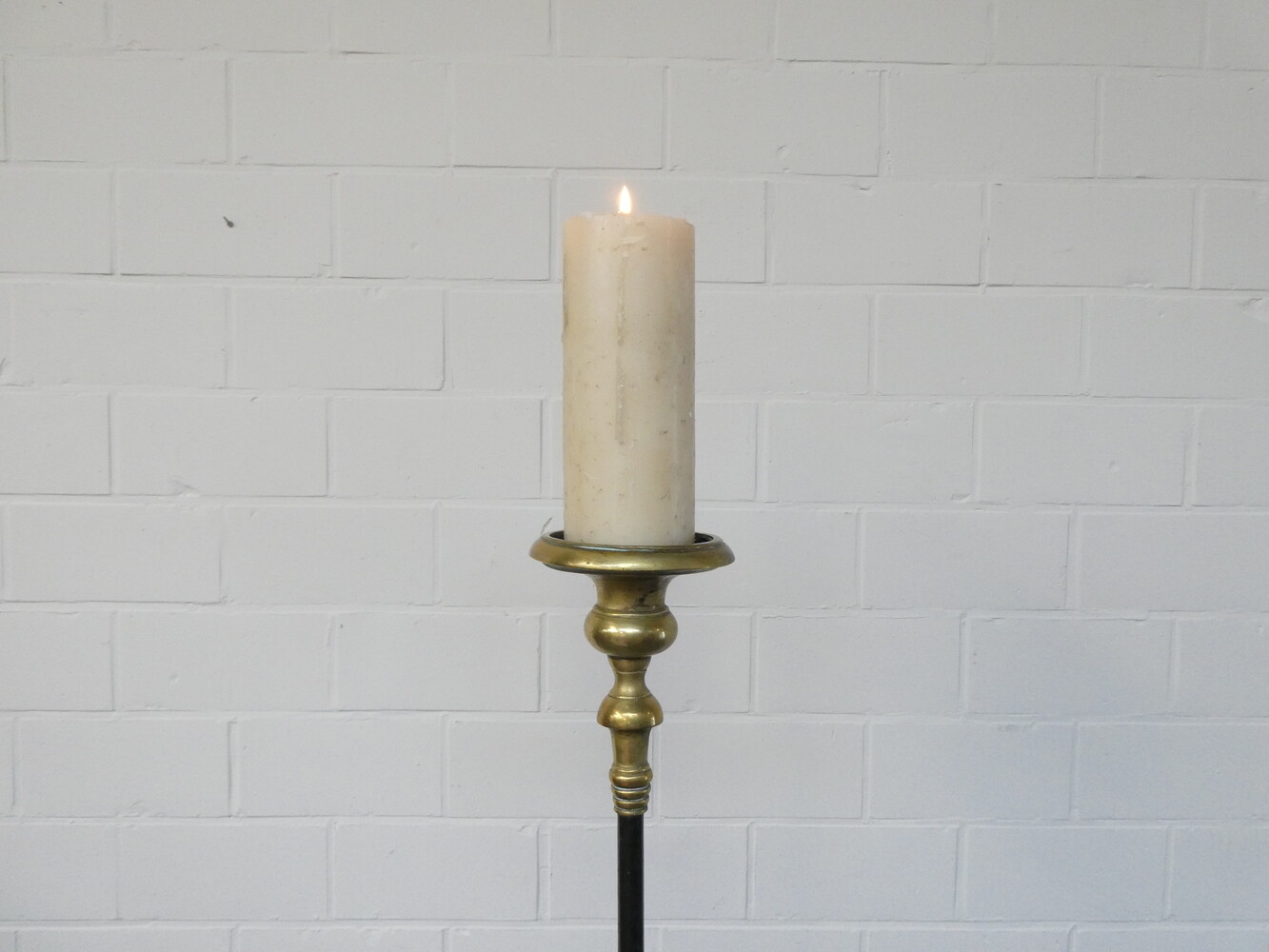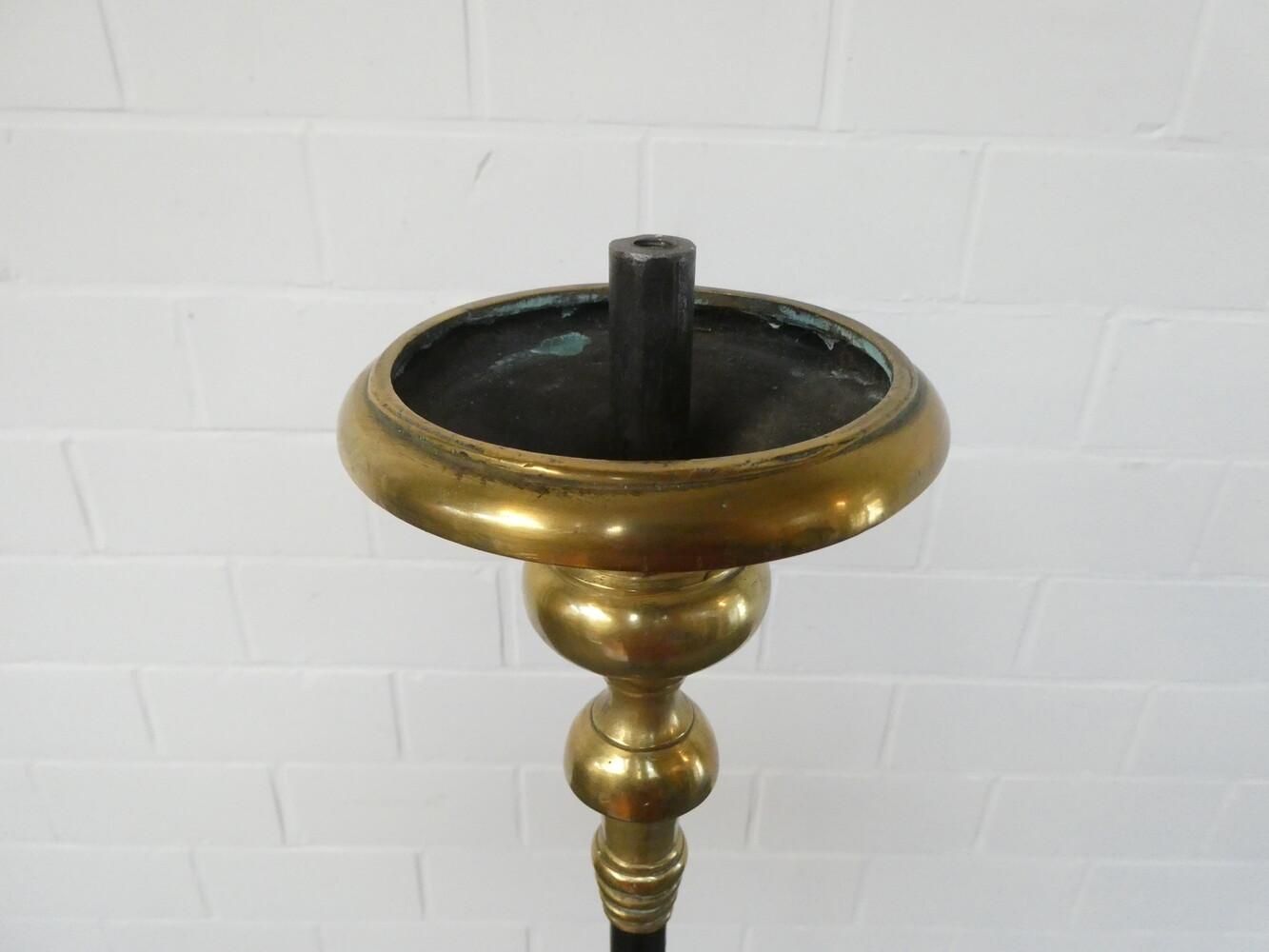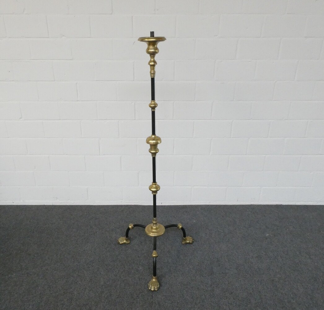 Grote zware antieke staander op klauwenpoten, ijzer en brons. Hoogte 142cm. ( Ideaal als kaarsenhouder ).
