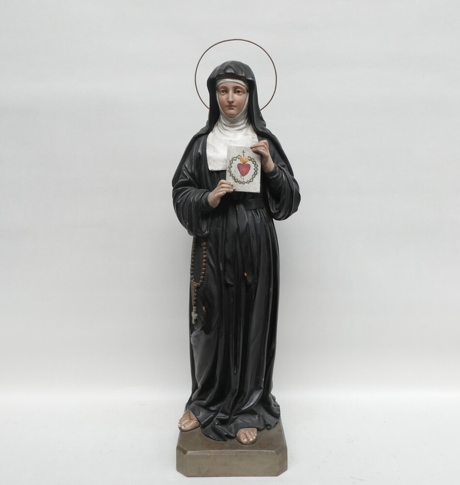 "Heilige Margaretha Maria Alacoque" houten beeld, polychroom, 19de eeuw.