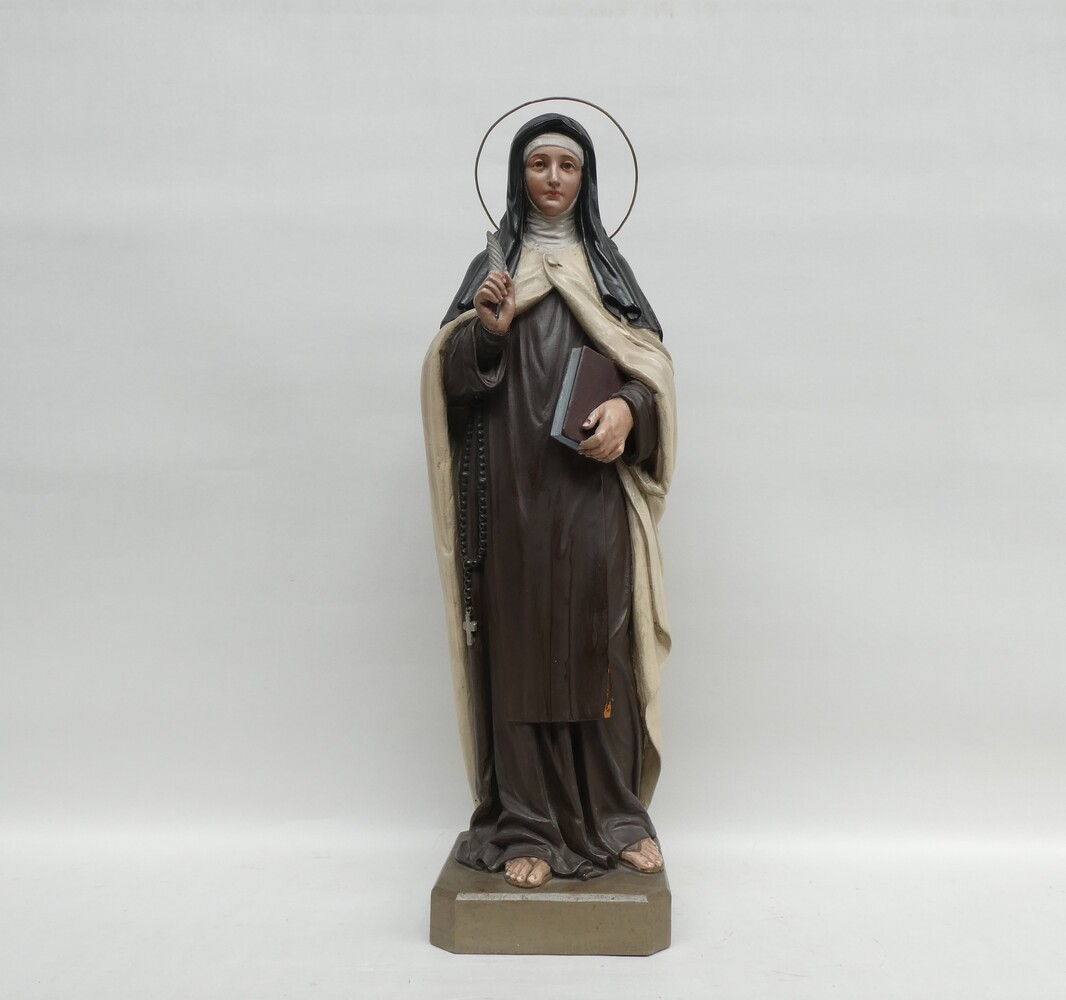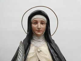"Heilige Theresia van Avilla" ( de Grote Theresia ), houten beeld, polychroom, 19de eeuw. Hoogte 75cm.