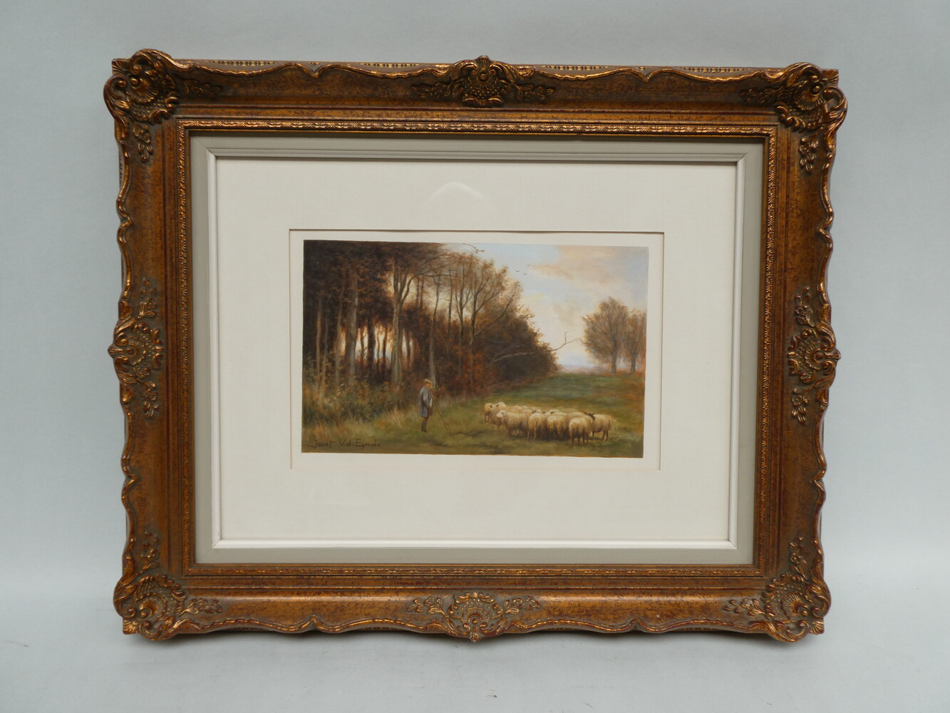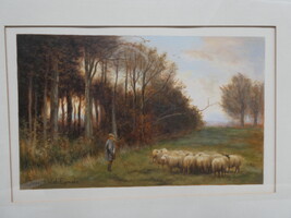 "Herder met schaapjes" fijne pastel, gesigneerd Joost V.D. Eynde. Pastel 26cmx16cm - met kader 52cm x 42cm.