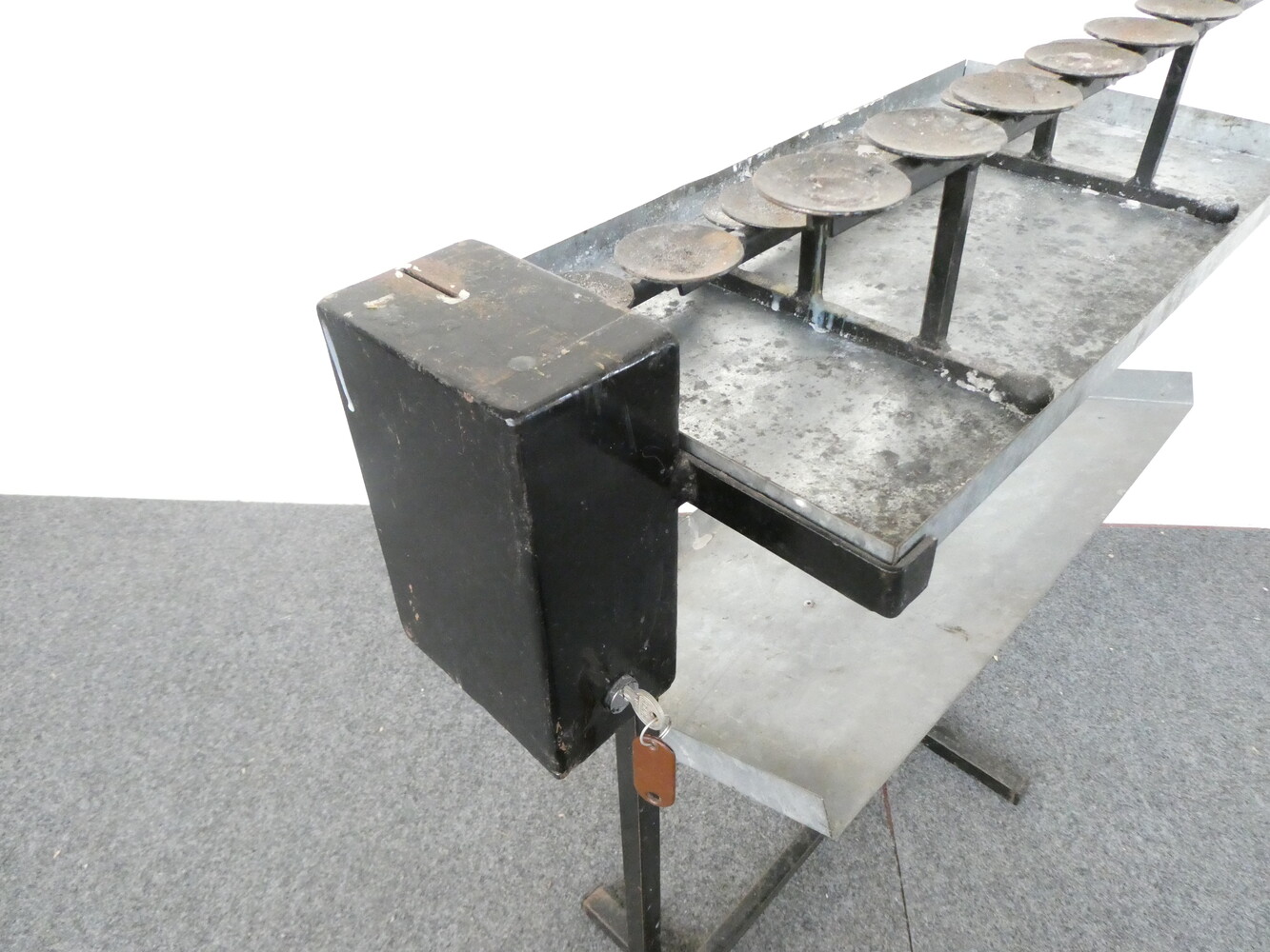 IJzeren tafel voor offerkaarsen ( theelichtjes ) uit de kerk.