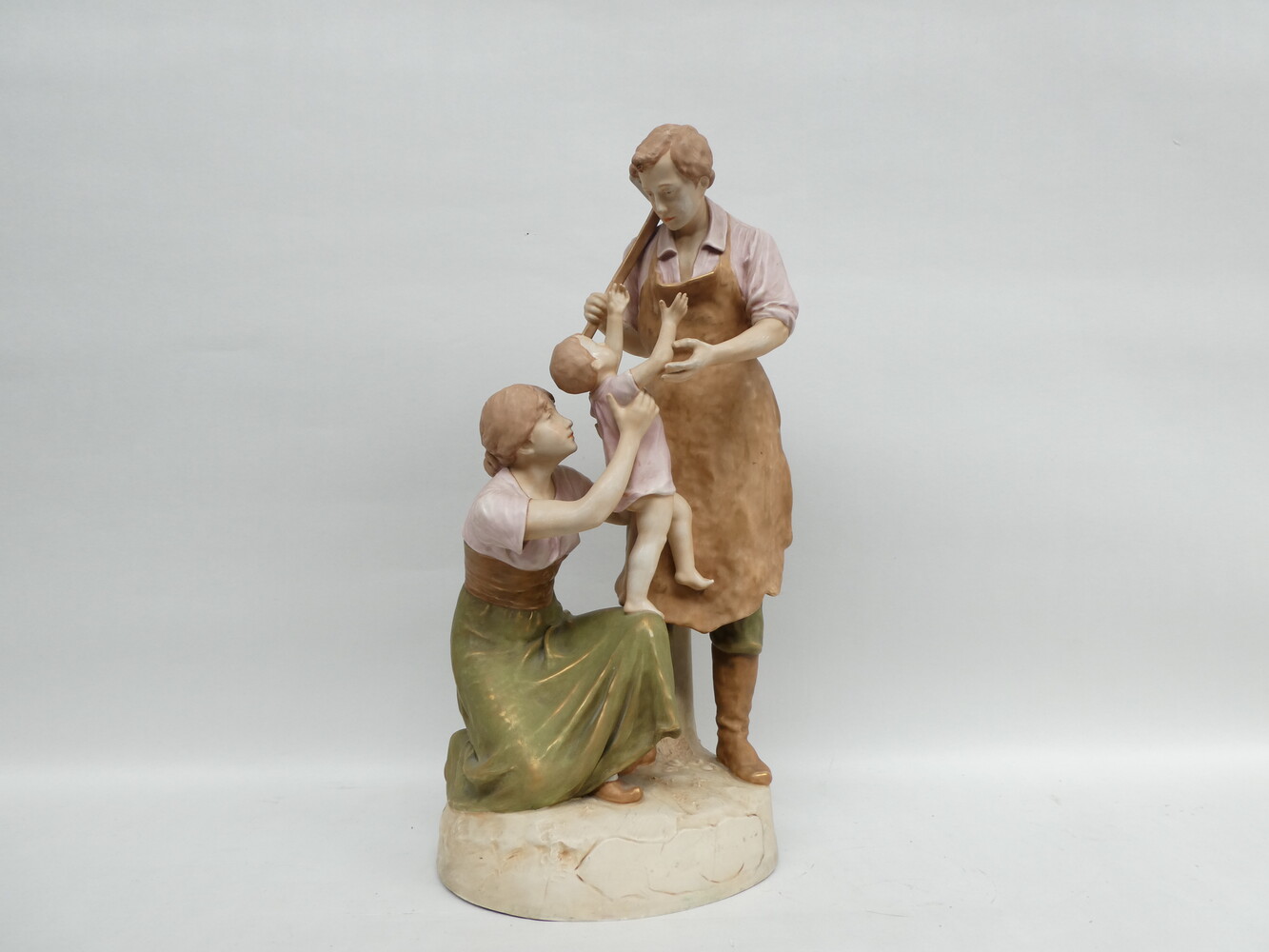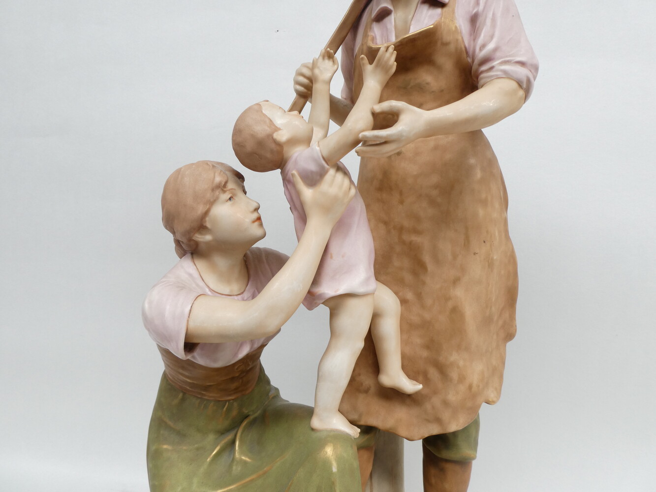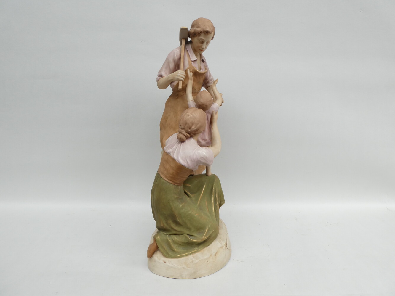 "Jong gezin" grote antieke beeldengroep Royal Dux, gemerkt met de grote roze driehoek.