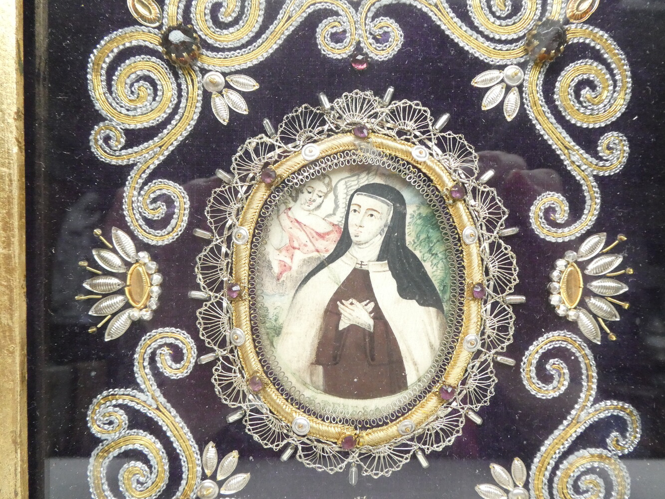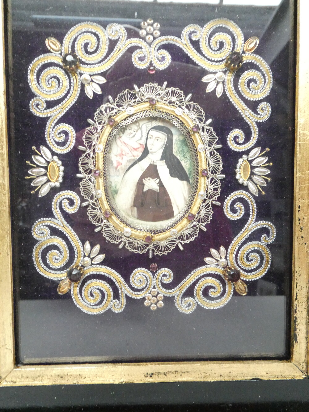 Kloosterwerk met miniatuurschildering "Theresia van Avilla"