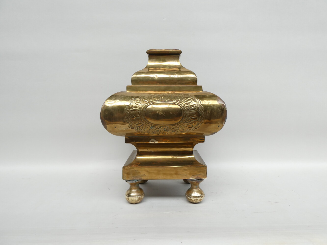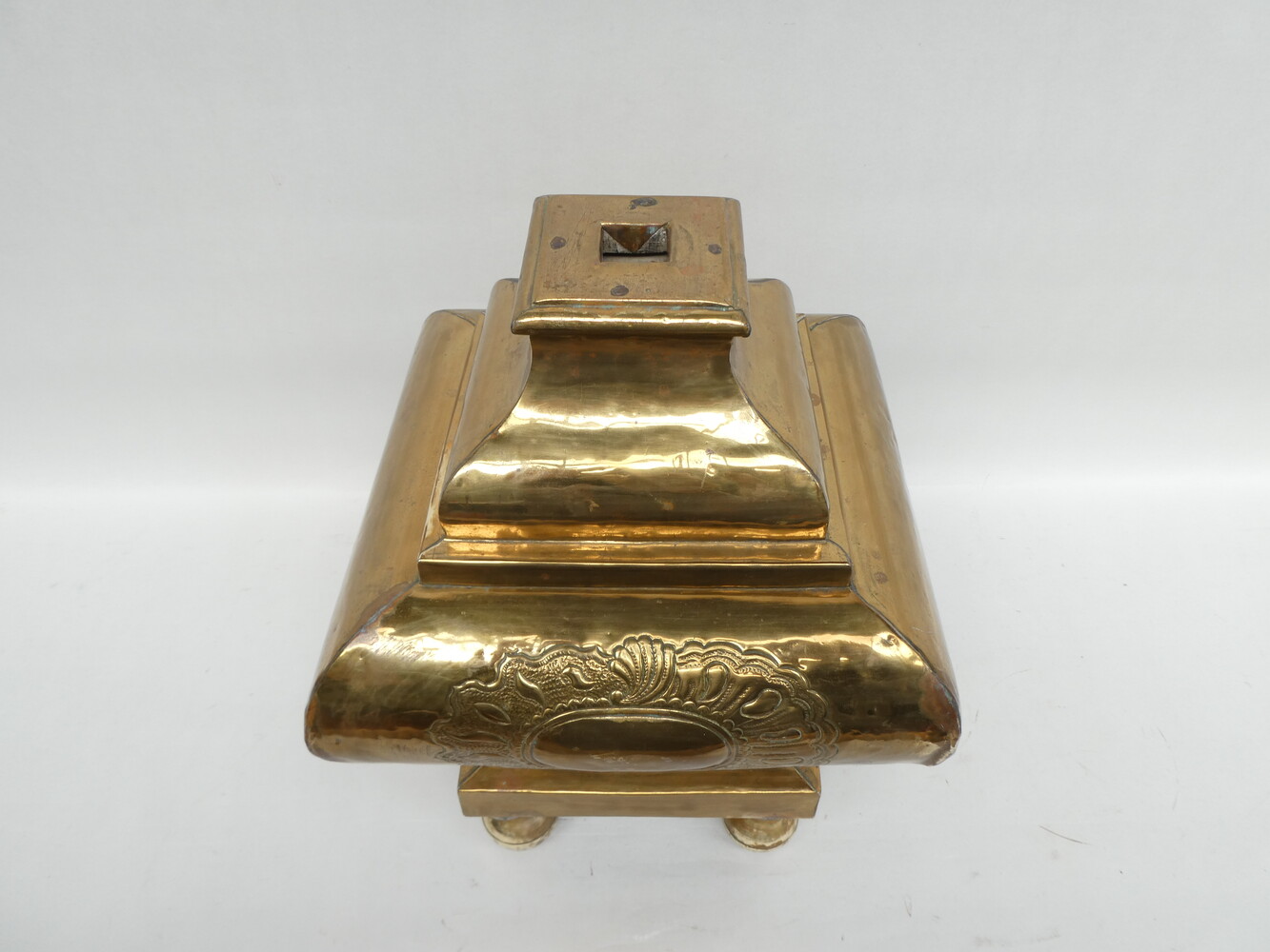 Koperen ornament van op een altaarstuk ( voetstuk kruis ? )