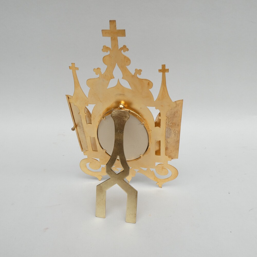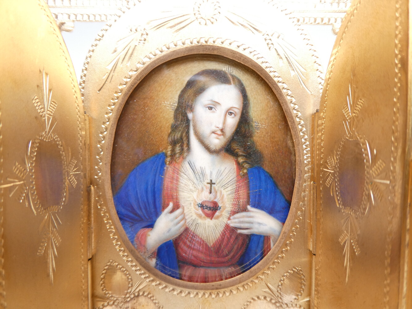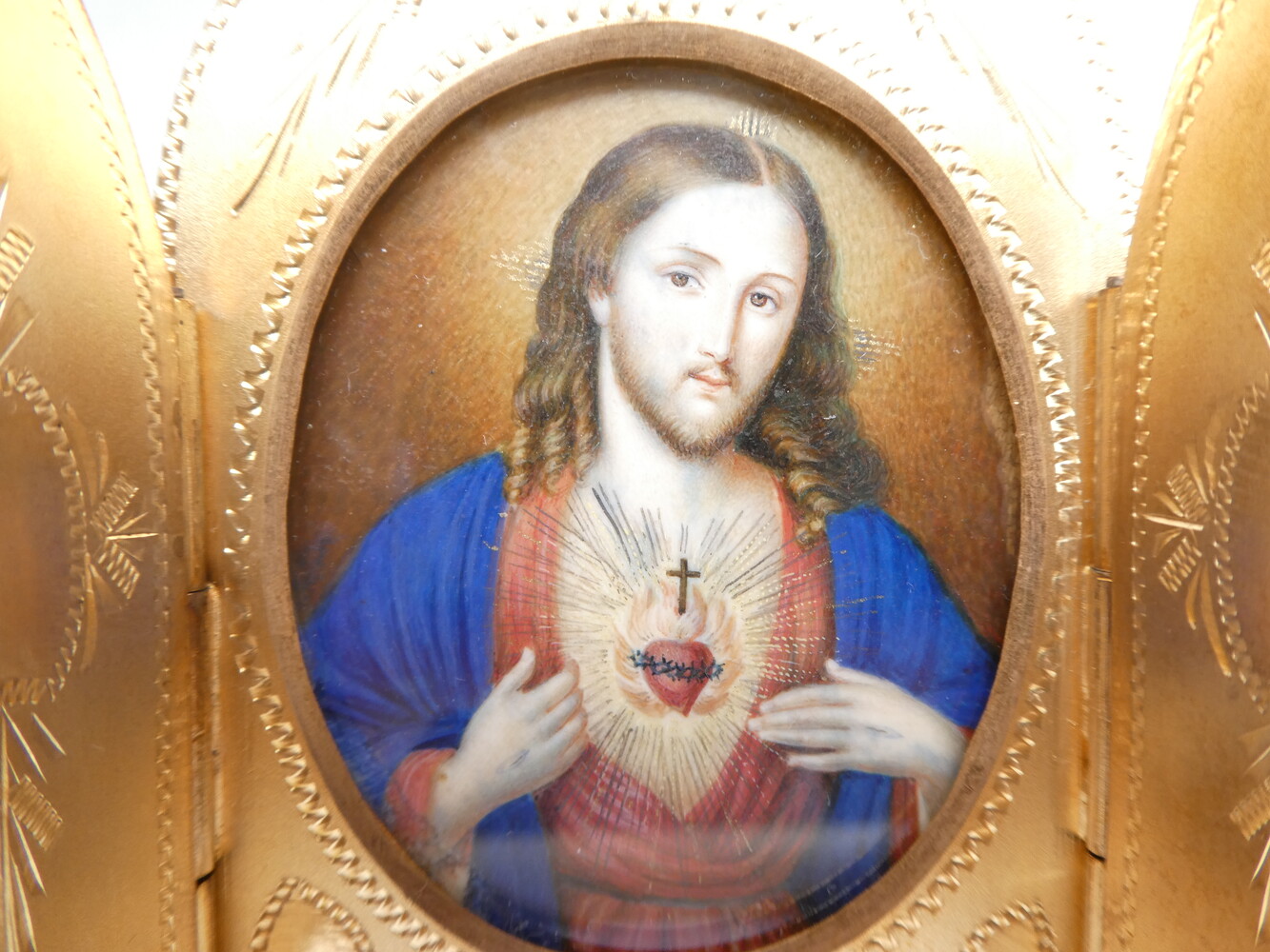 Koperen sierlijstje 11cmx18cm met een een miniatuur schilderijtje "Heilig Hart".