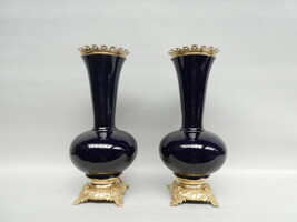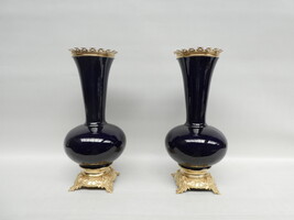 Koppel blauwe vazen faiënce met bronzen voetstuk en montuur