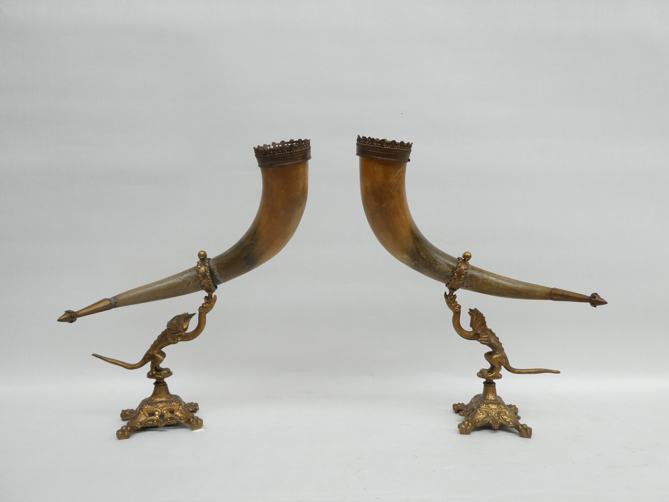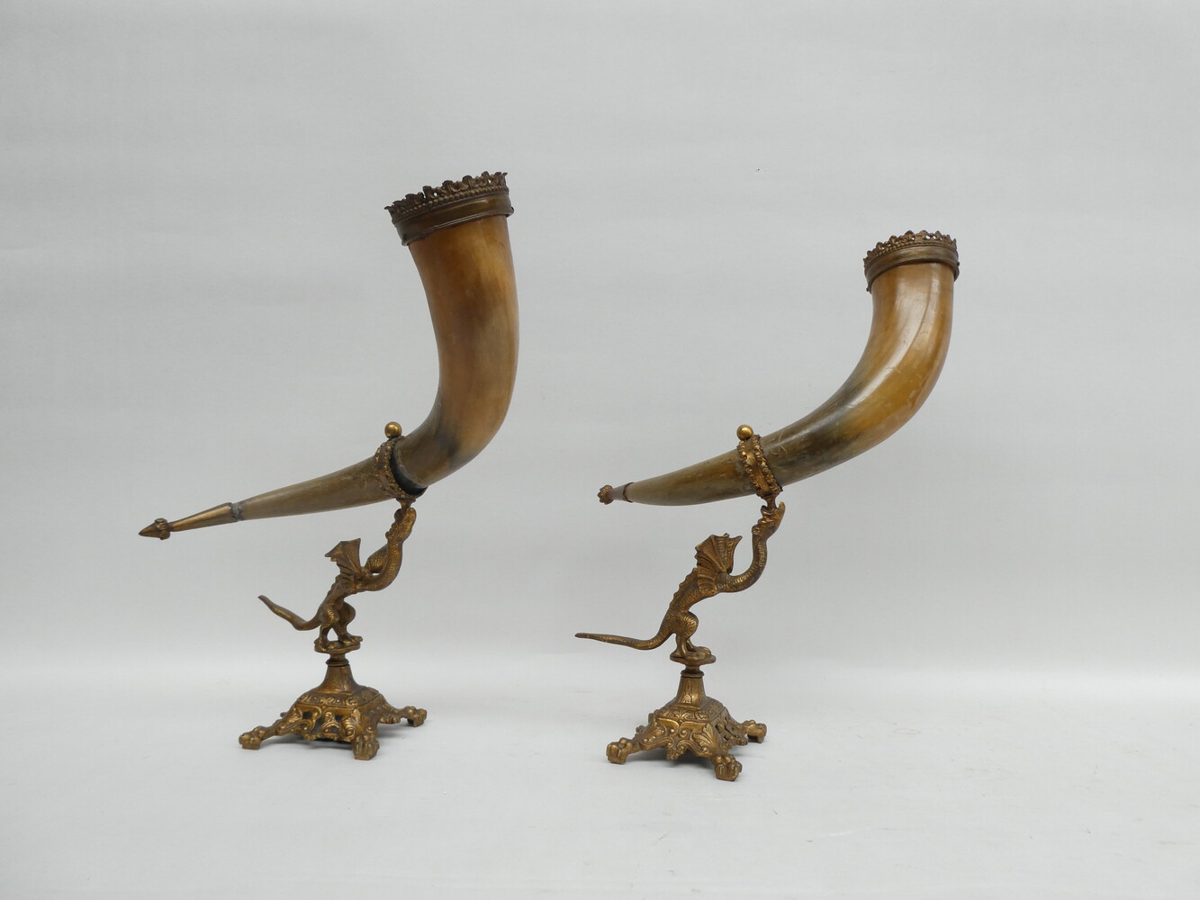 Koppel "hoorns des overvloeds" in brons en hoorn