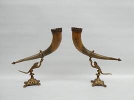 Koppel "hoorns des overvloeds" in brons en hoorn.