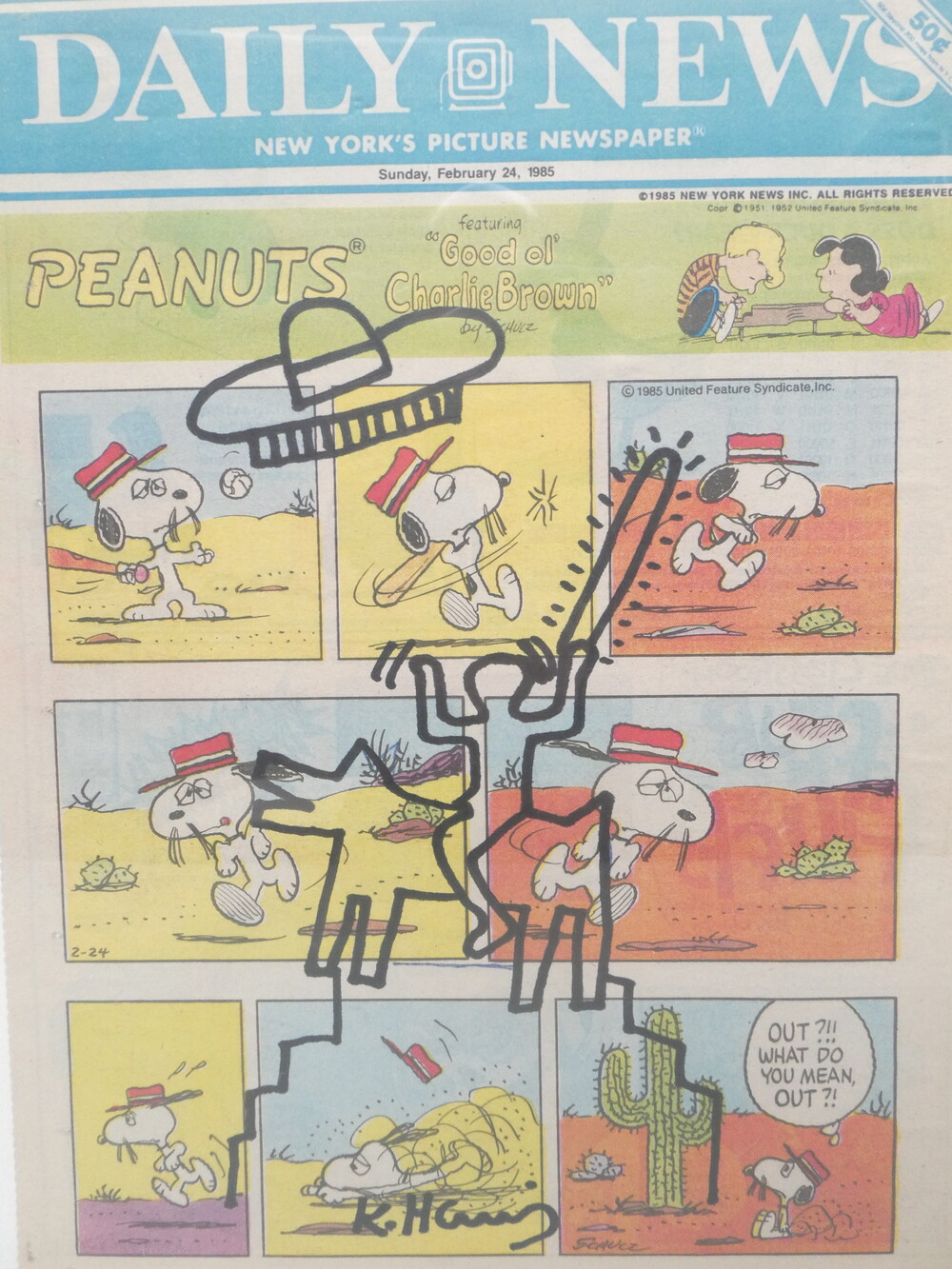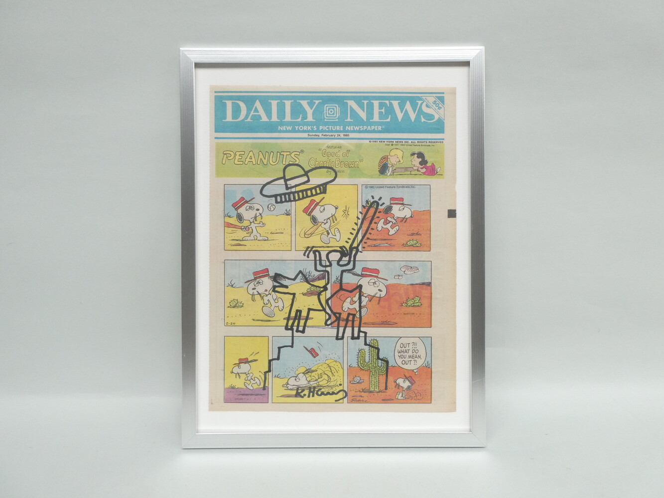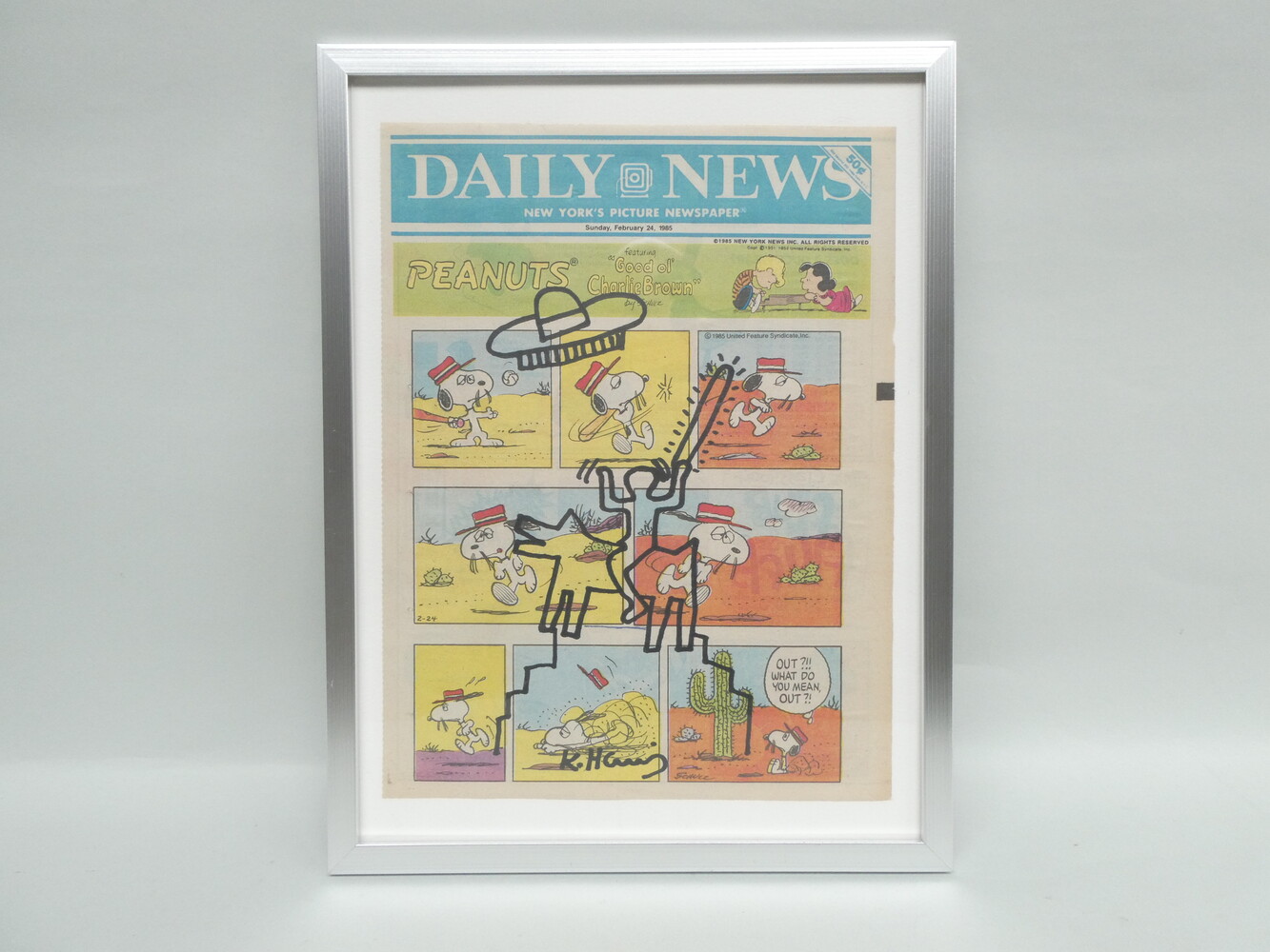 "Man met hond" viltstifttekening van Keith Haring. Kader : 33cm x 43cm.