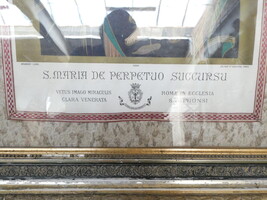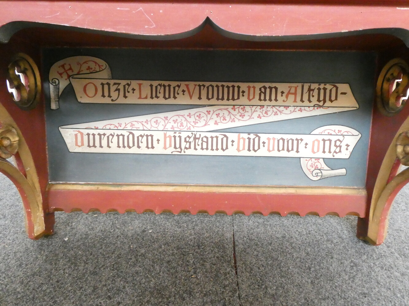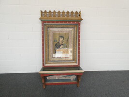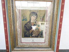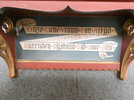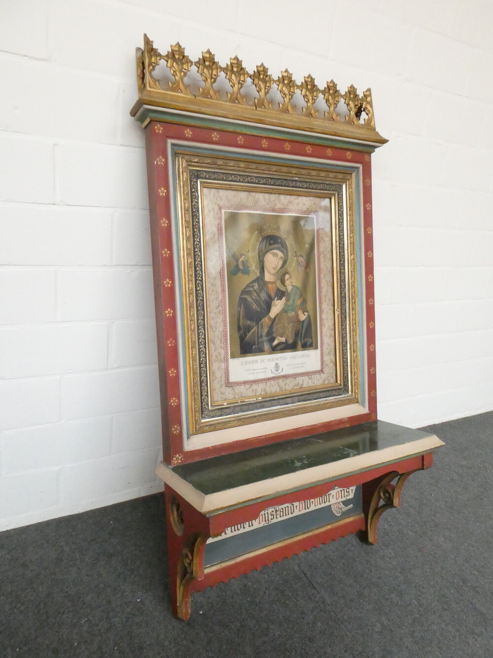 "Maria altijd durende bijstand" chromolitho in grote verdiepte neogotieke kader met schap. cm x 138cm.