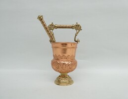 Mooi bewerkte wijwateremmer in geel en rood koper met kwispel