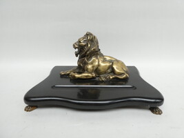 Napoleon III inkstel met inktpot in de vorm van bronzen leeuw