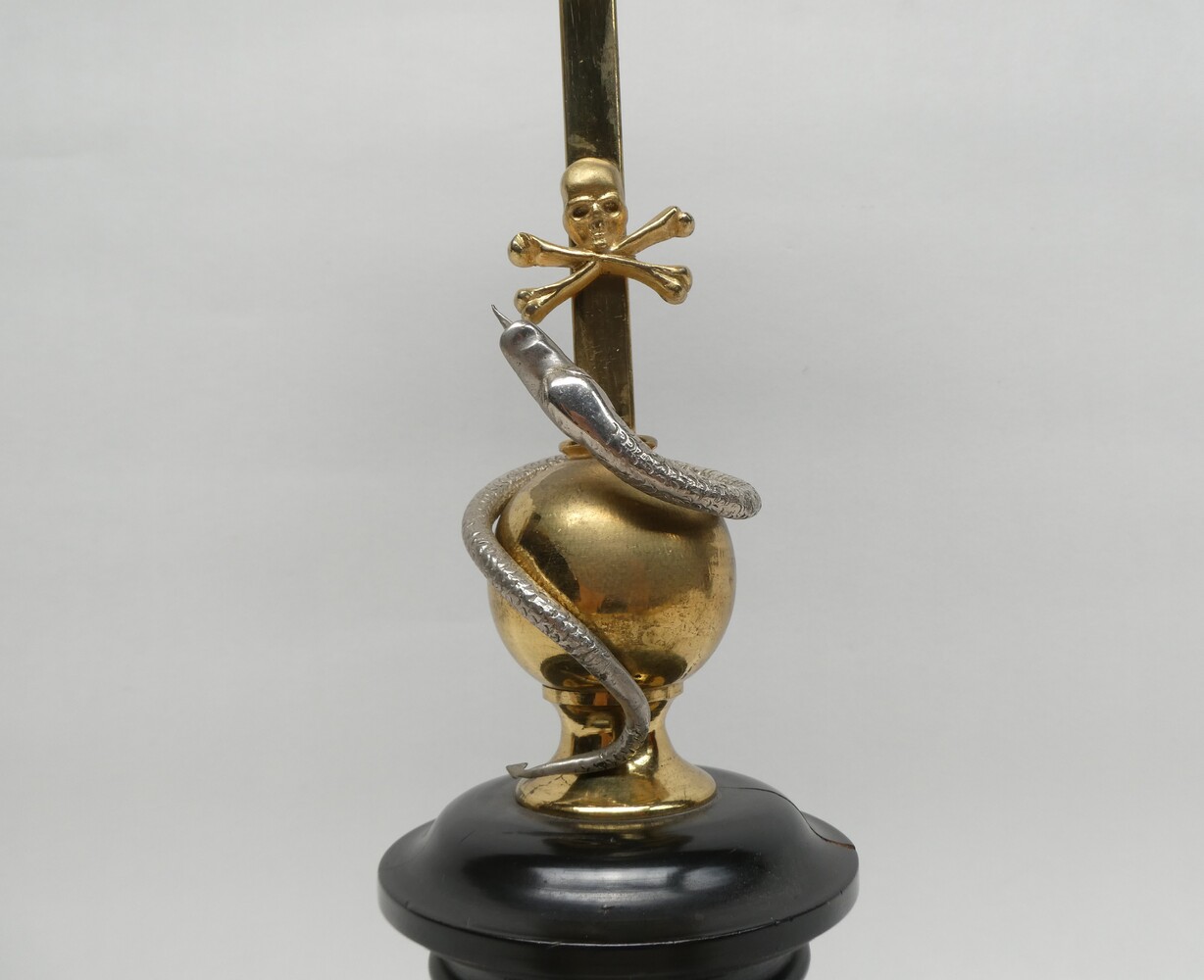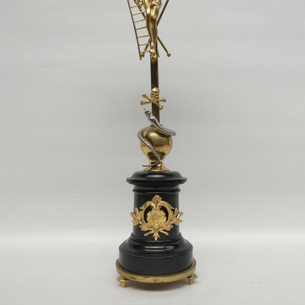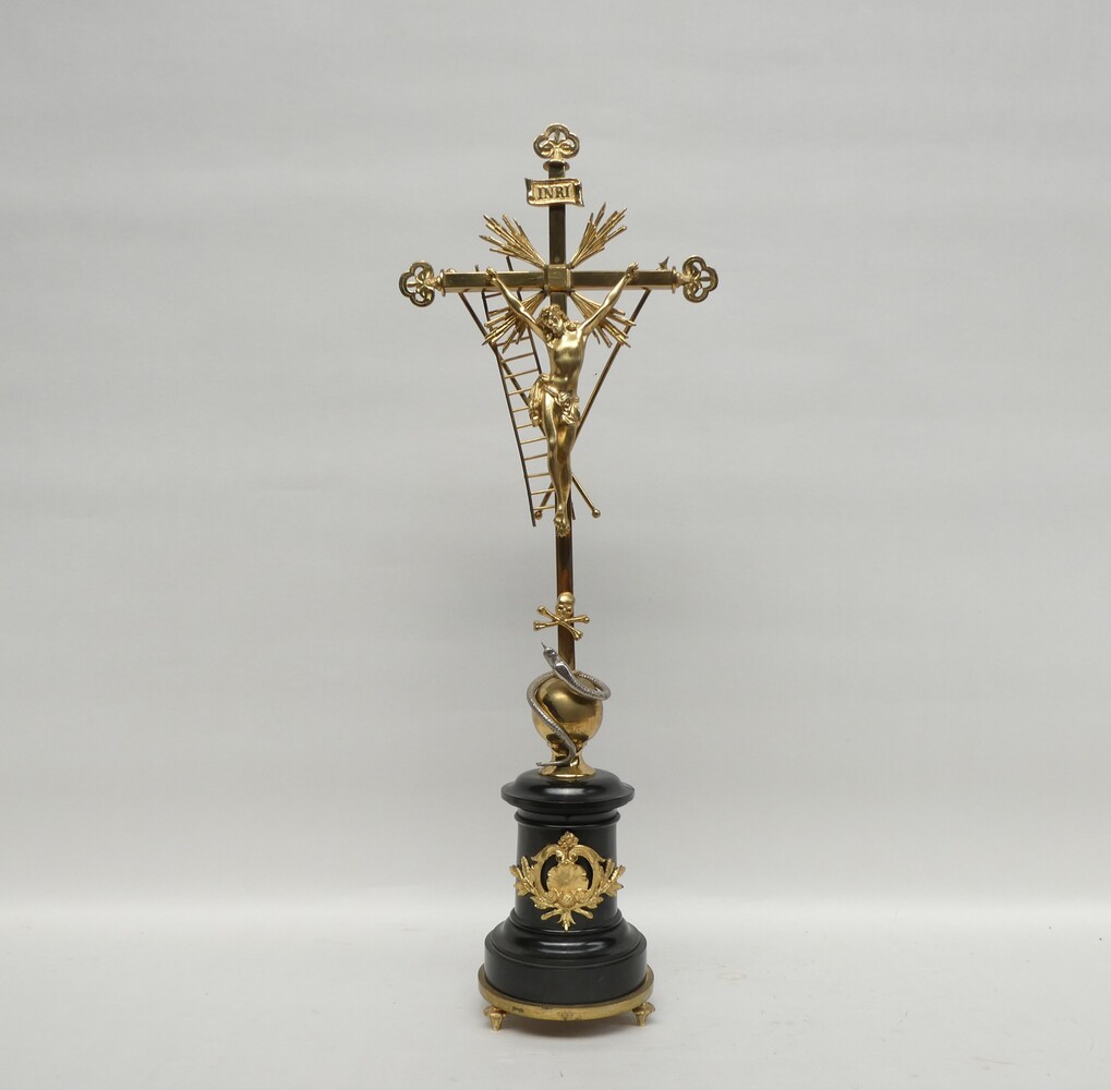 Napoleon III koperen kruisbeeld op zwarthouten voetstuk