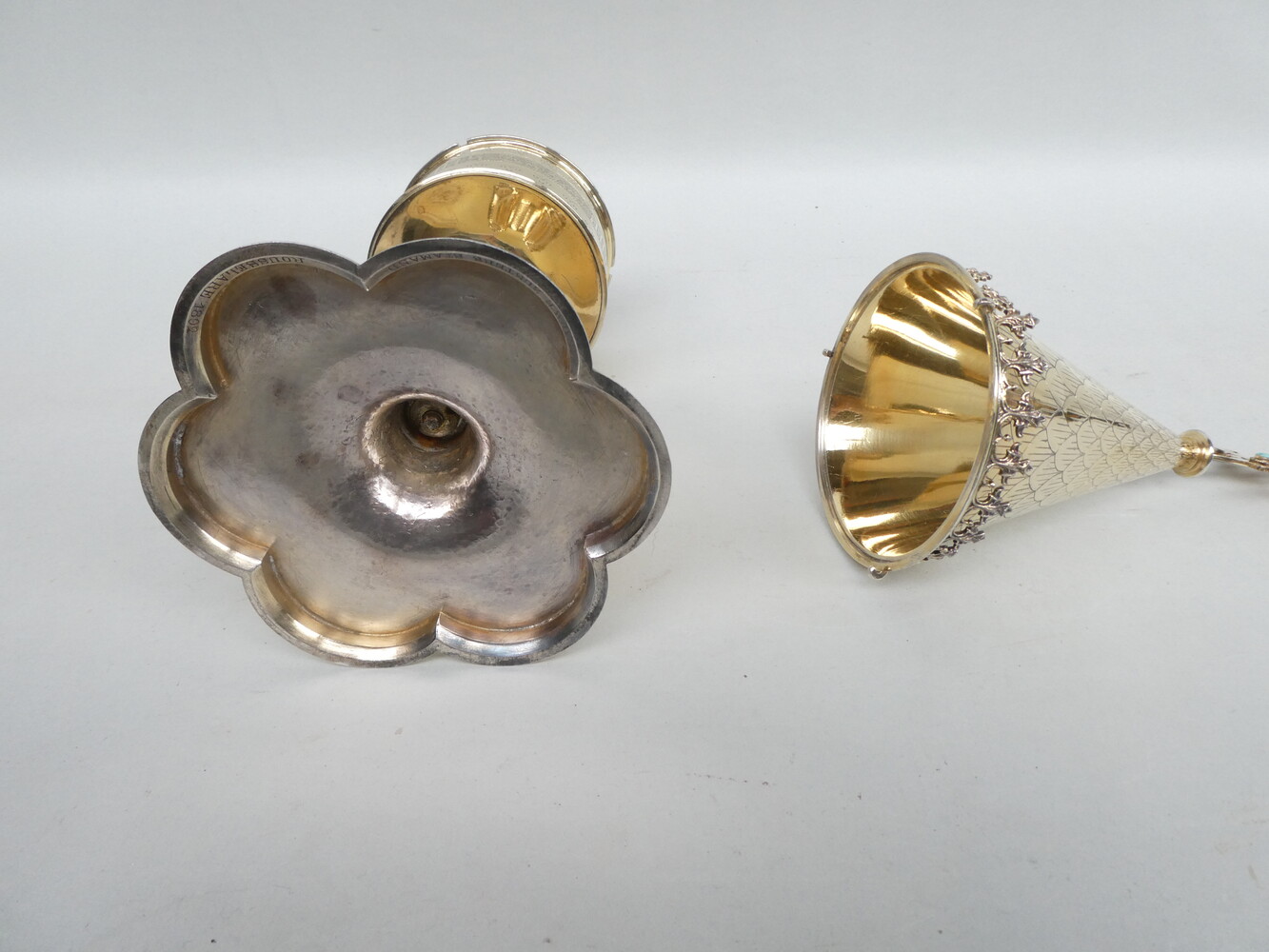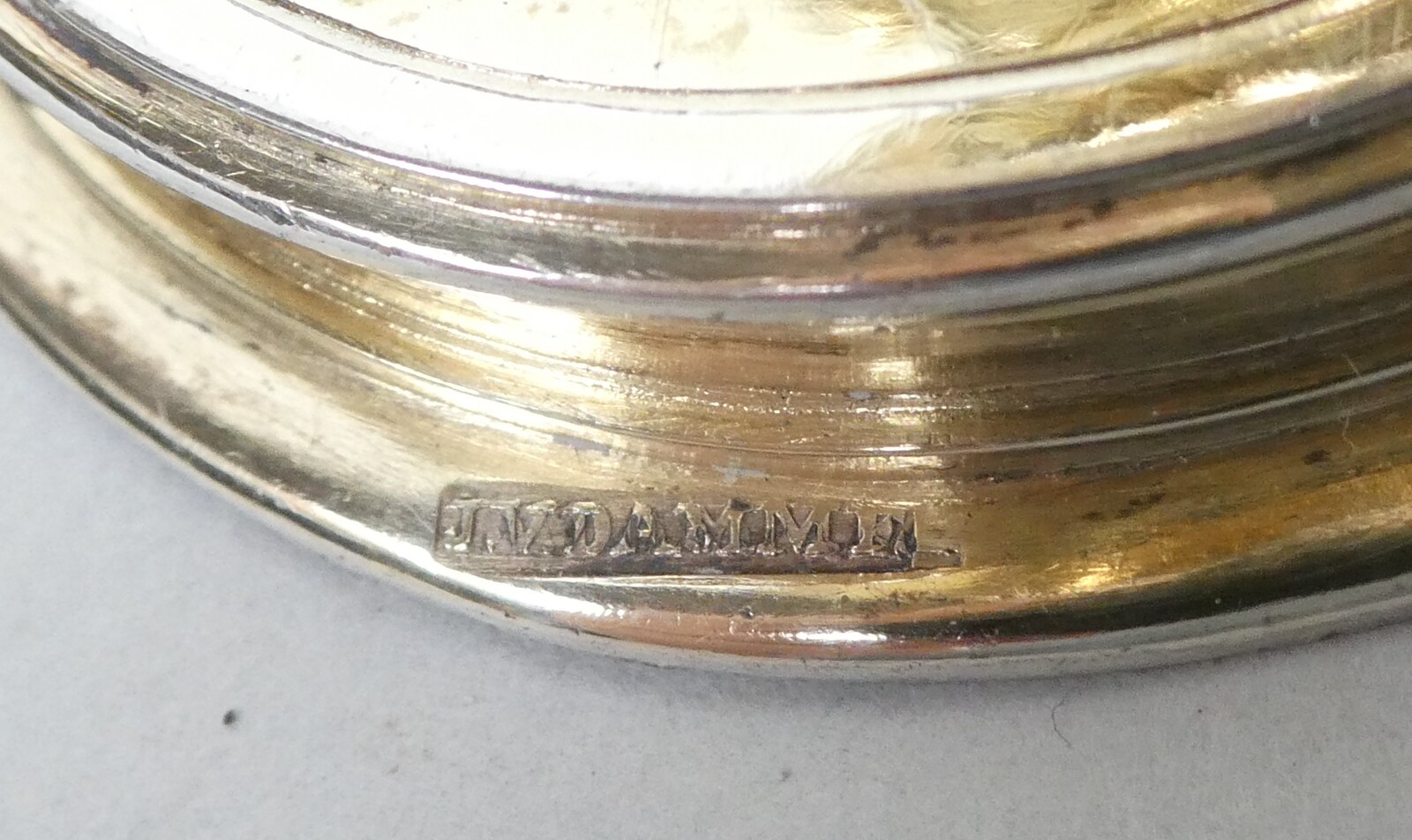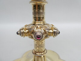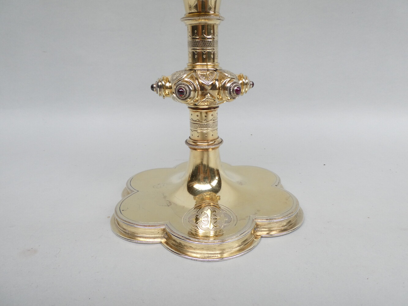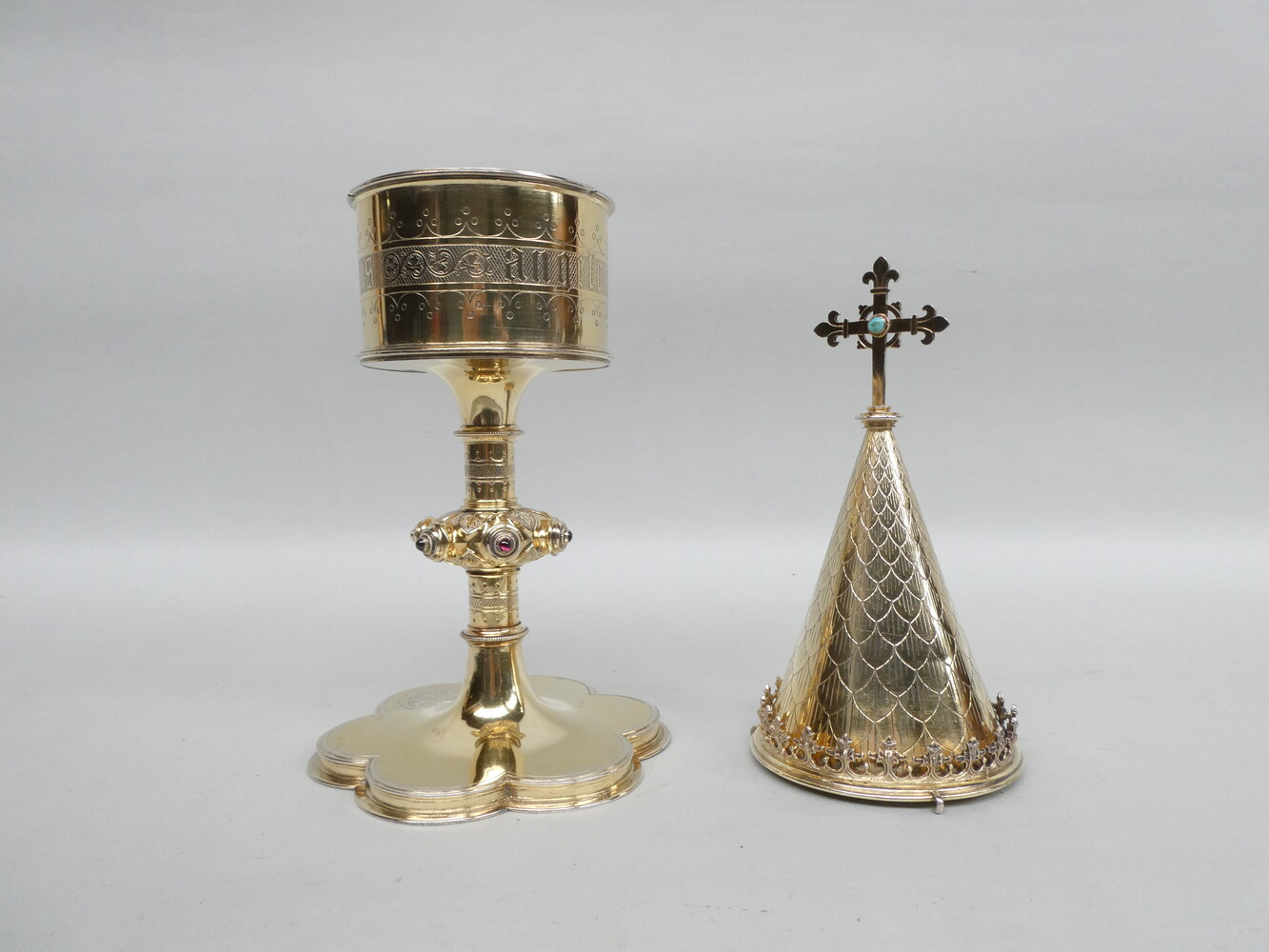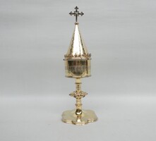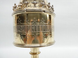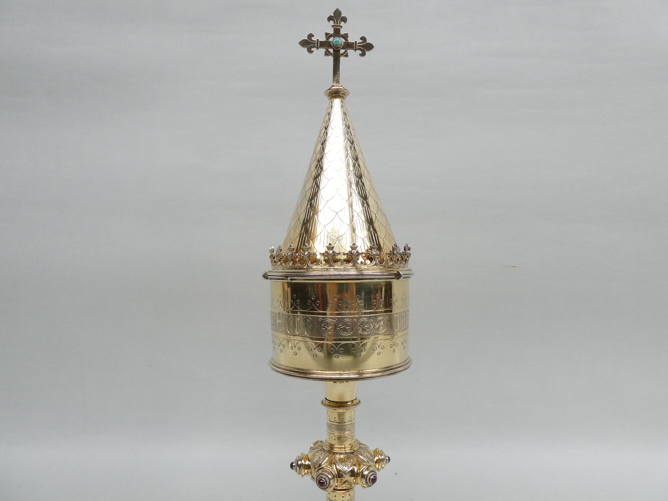Neogotische Brugse zilveren torenciborie, verguld, gedateerd 1892. Zilversmid Jean-Baptiste Van Damme 1863 - 1917. Totale hoogte 40cm - gewicht 785gram.