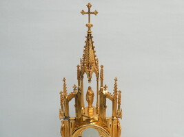 Neogotische torenmonstrans, koper/verguld.