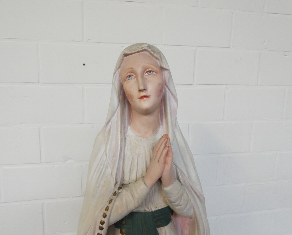 "Onze Lieve Vrouw van Lourdes" GROOT neogotisch gipsen kerkbeeld, polychroom.