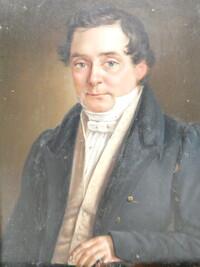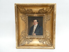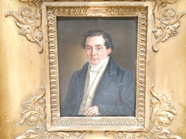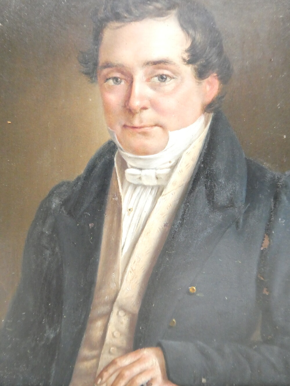 "Portret notabel persoon" antiek oliewerkje op koper.