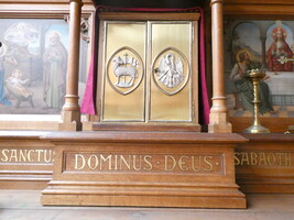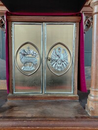 - middenin twee koperen deuren voor tabernakel,