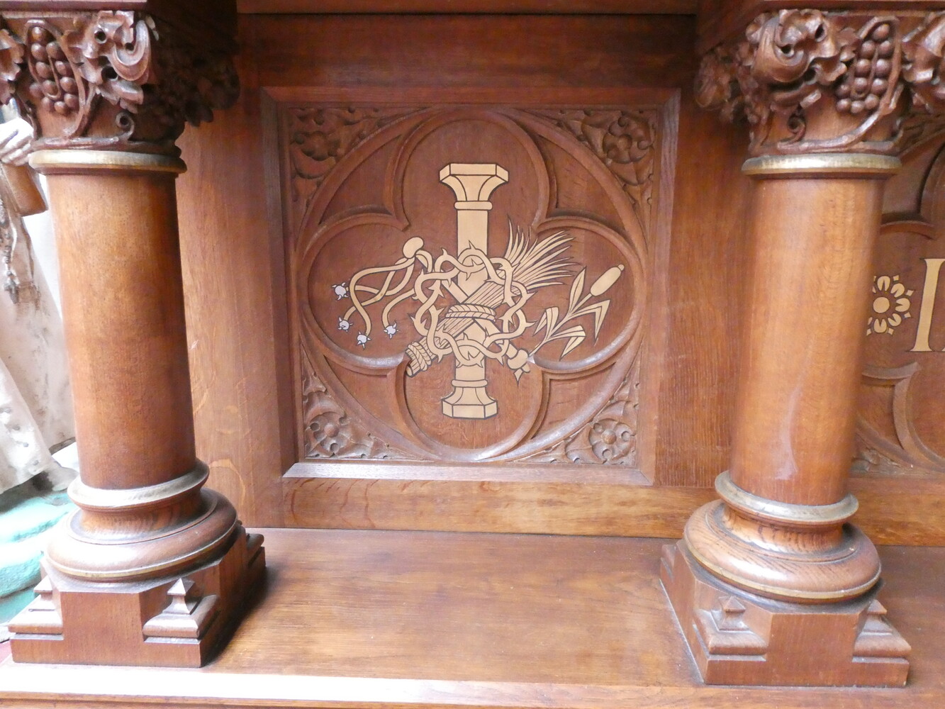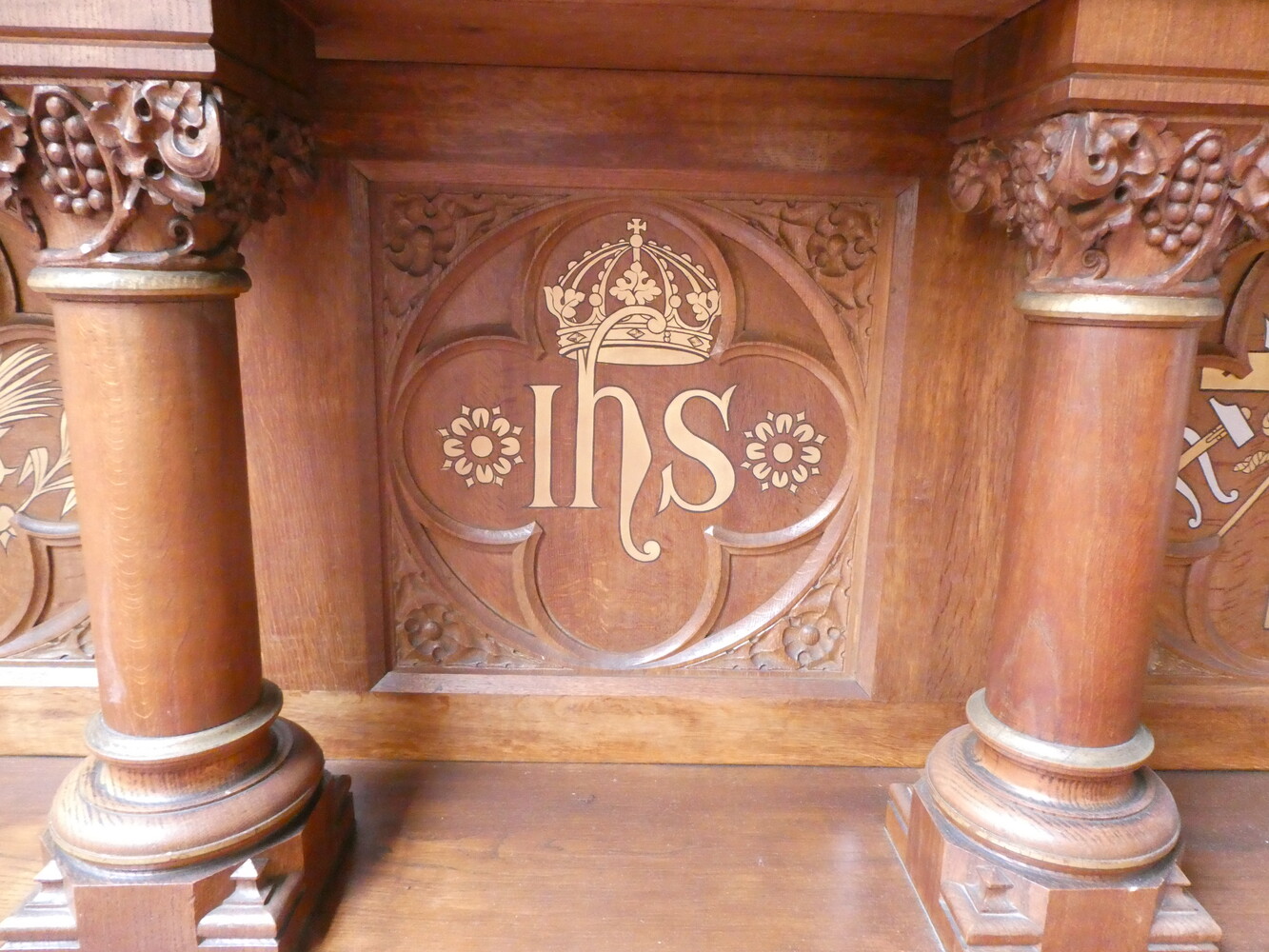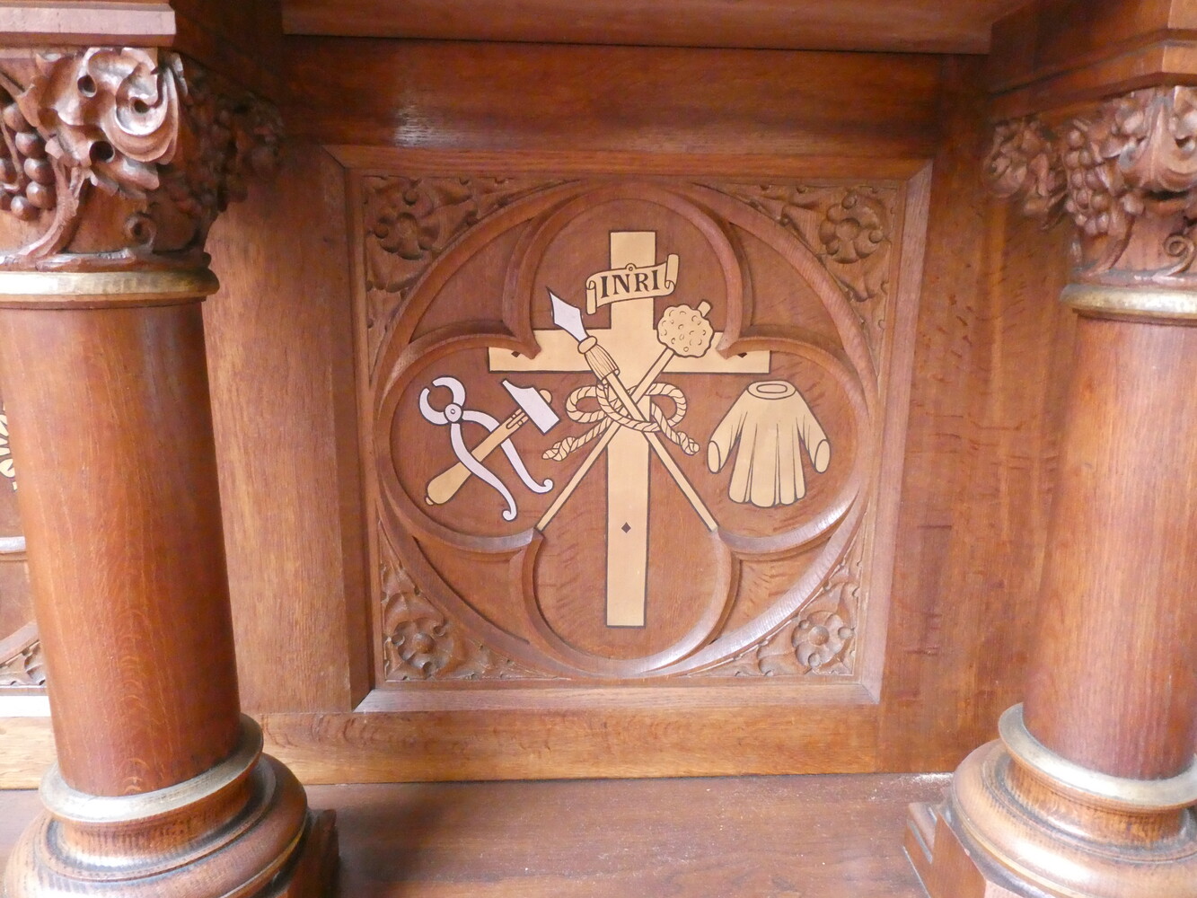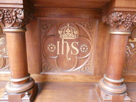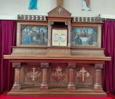 Prachtig neogotisch eiken altaar, tweedelig.