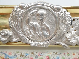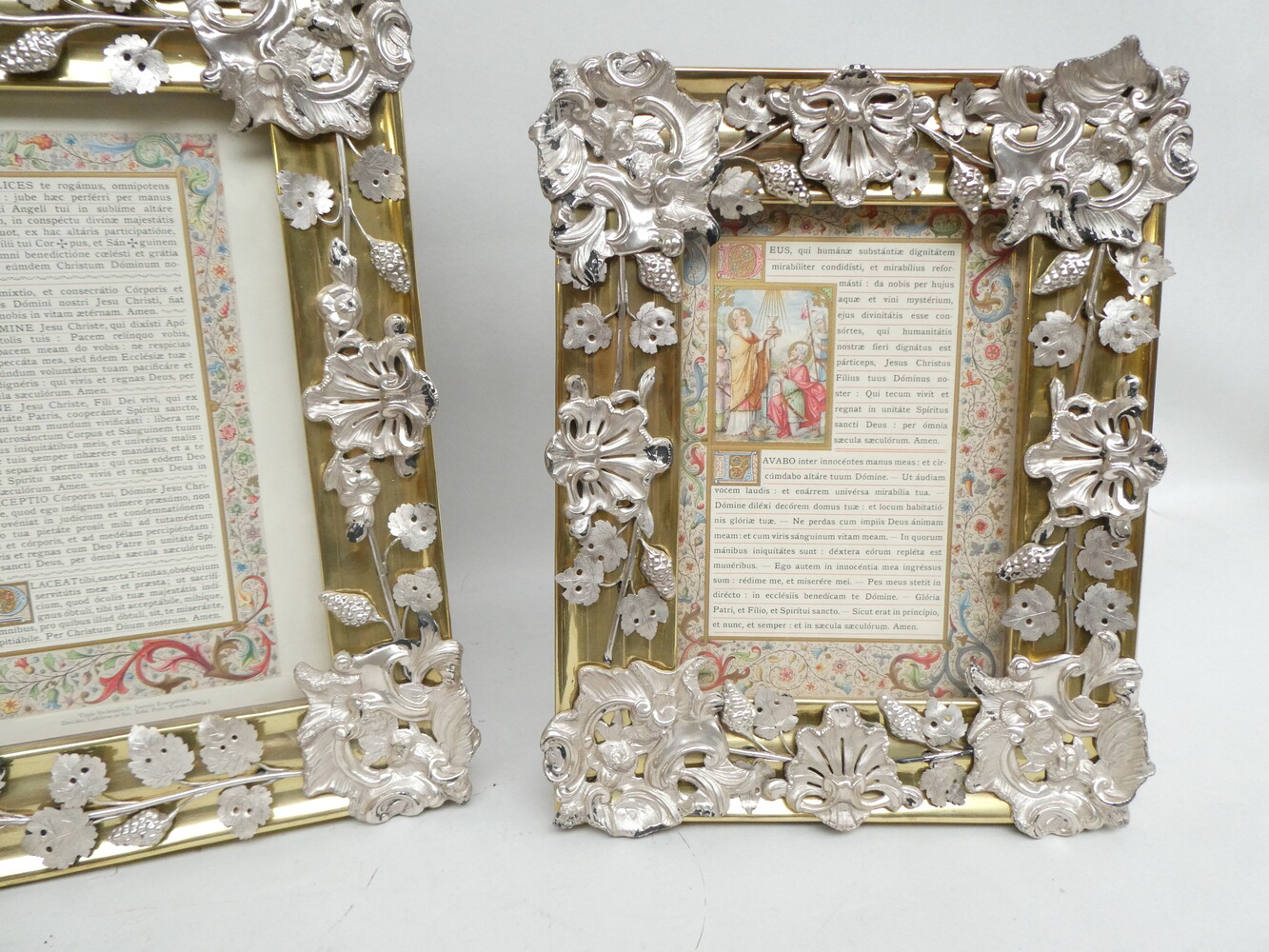 Prachtig set Canonborden in zware kaders van hout/koper, versierd met massief zilverbeslag, vele zilverstempels. 25cmx31cm en 53cmx35cm.